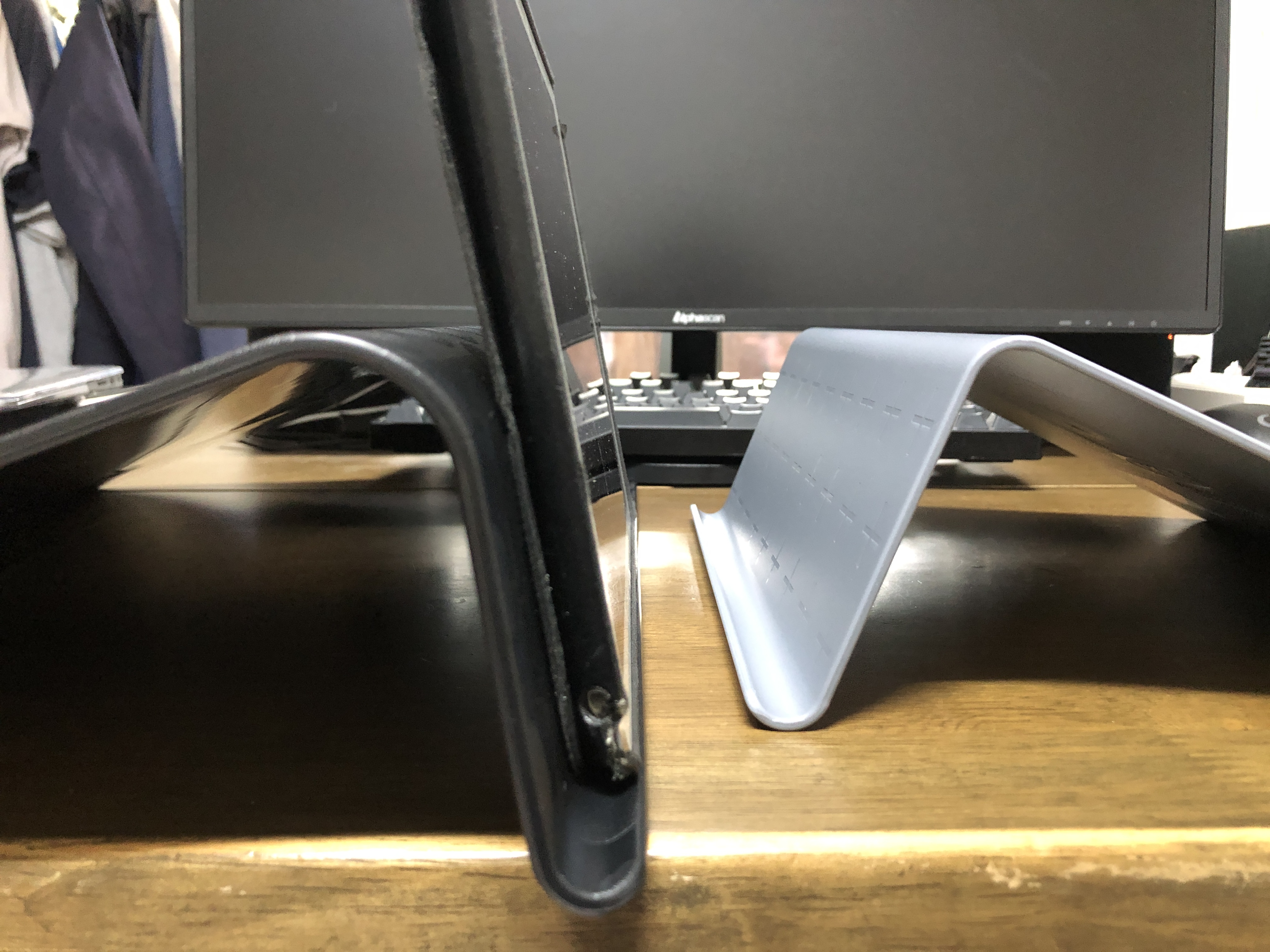 왼쪽은 ISBERGET 이스베리에트 태블릿 거치대, 오른쪽은 BRADA 브레다 노트북 받침대. 가격은 각각 2500원, 4900원입니다. 가격만큼 크기 차이도 큽니다.