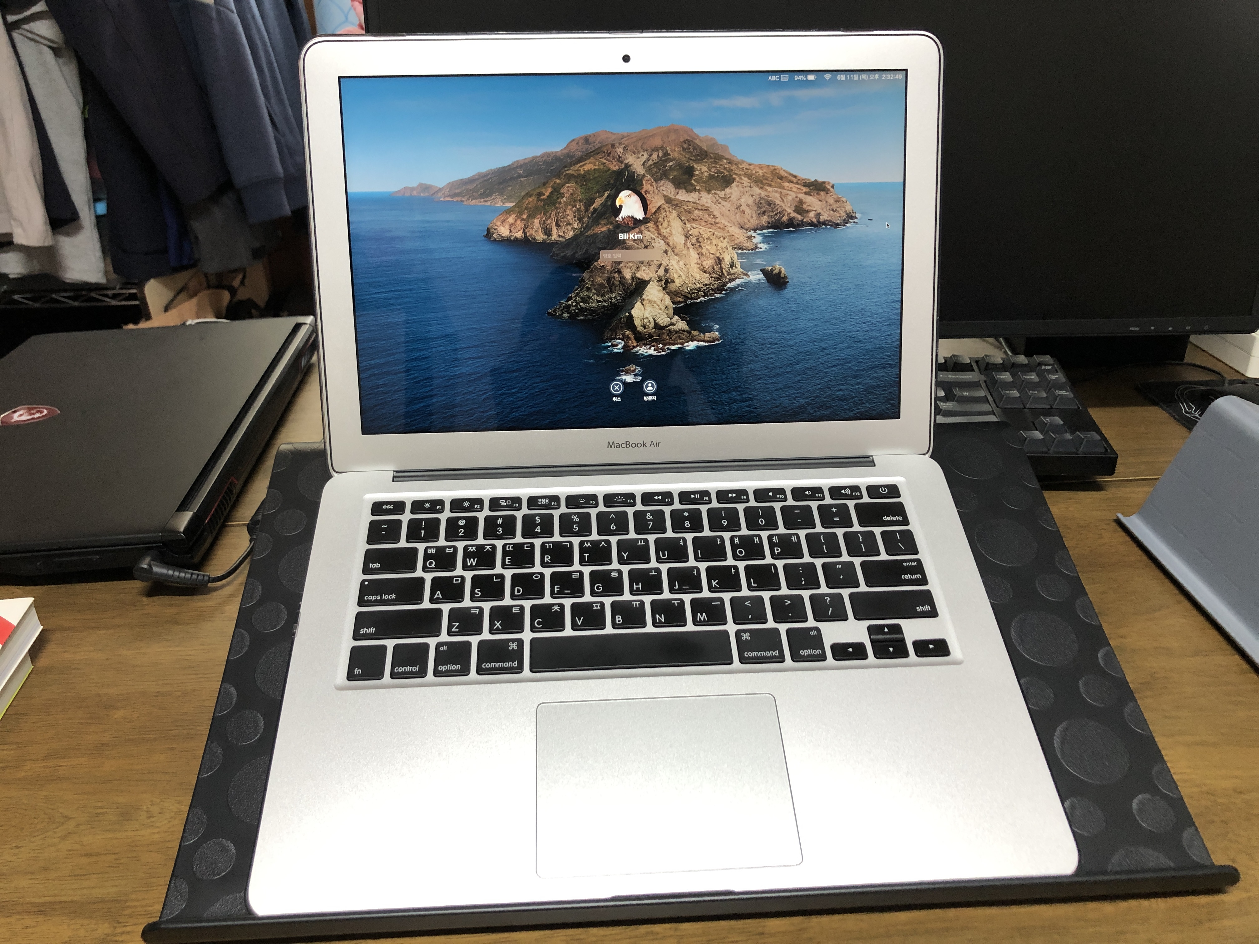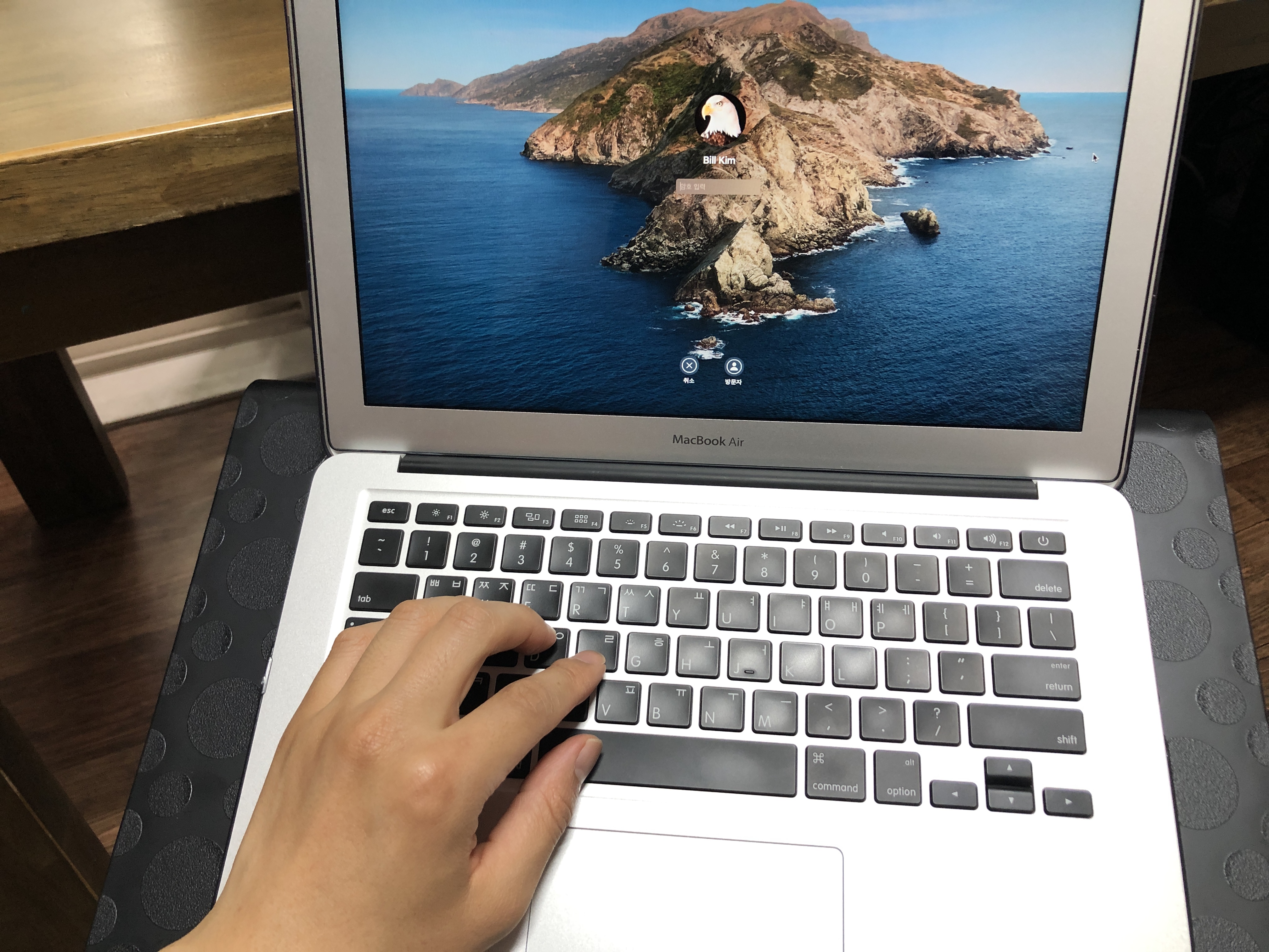 키보드, 트랙패드가 있는 쪽 턱이 높아 손목이 닿아서 조금 불편하게 느껴지는 부분은 있습니다. 손목이 약한 사람은 쓰기 불편할지도 모르겠습니다. 단 맥북에어보다 두꺼운 노트북을 쓰는 사람이라면 이런 문제는 없겠네요.