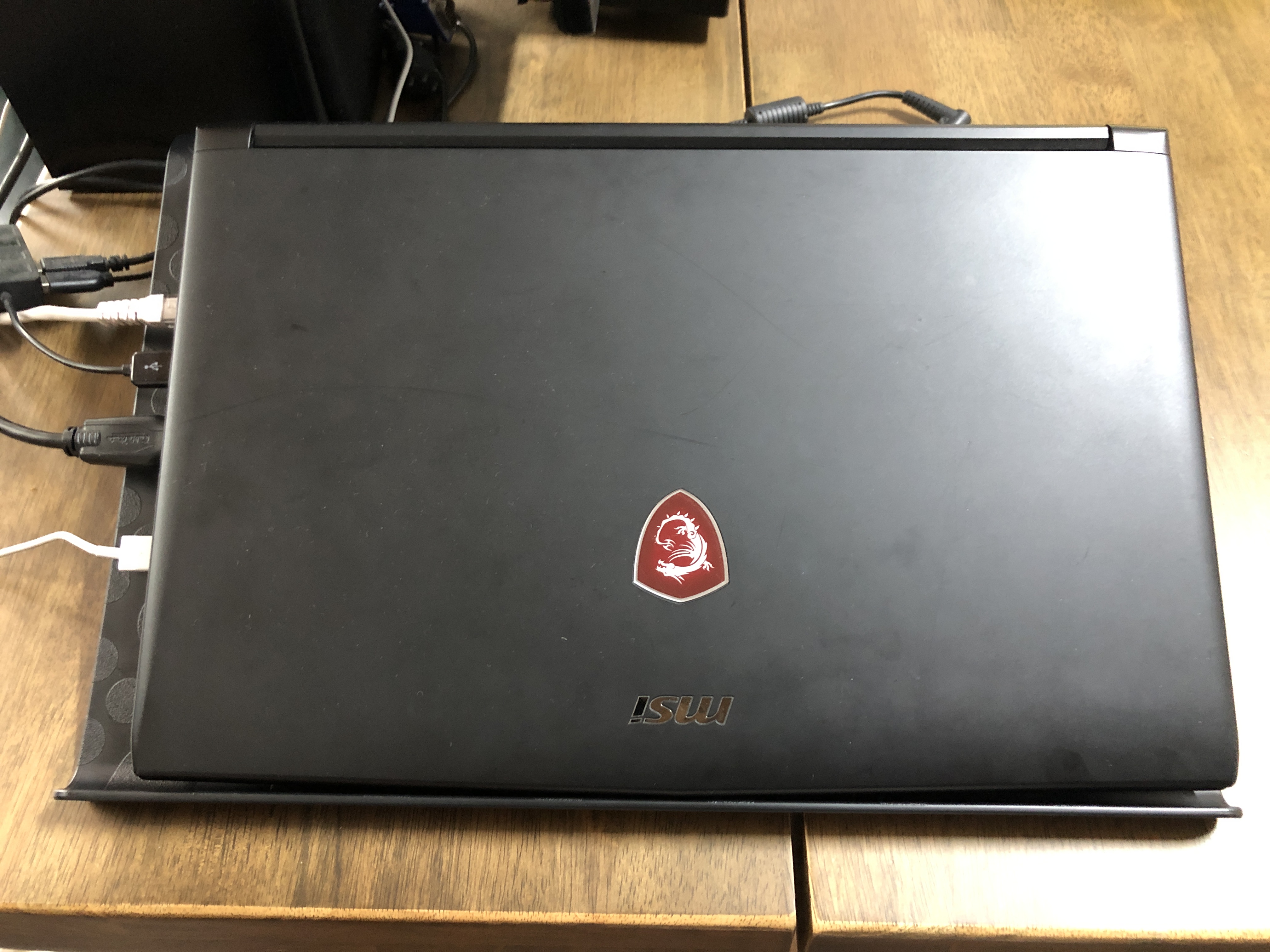15인치 게이밍 노트북을 올려놓은 모습입니다.