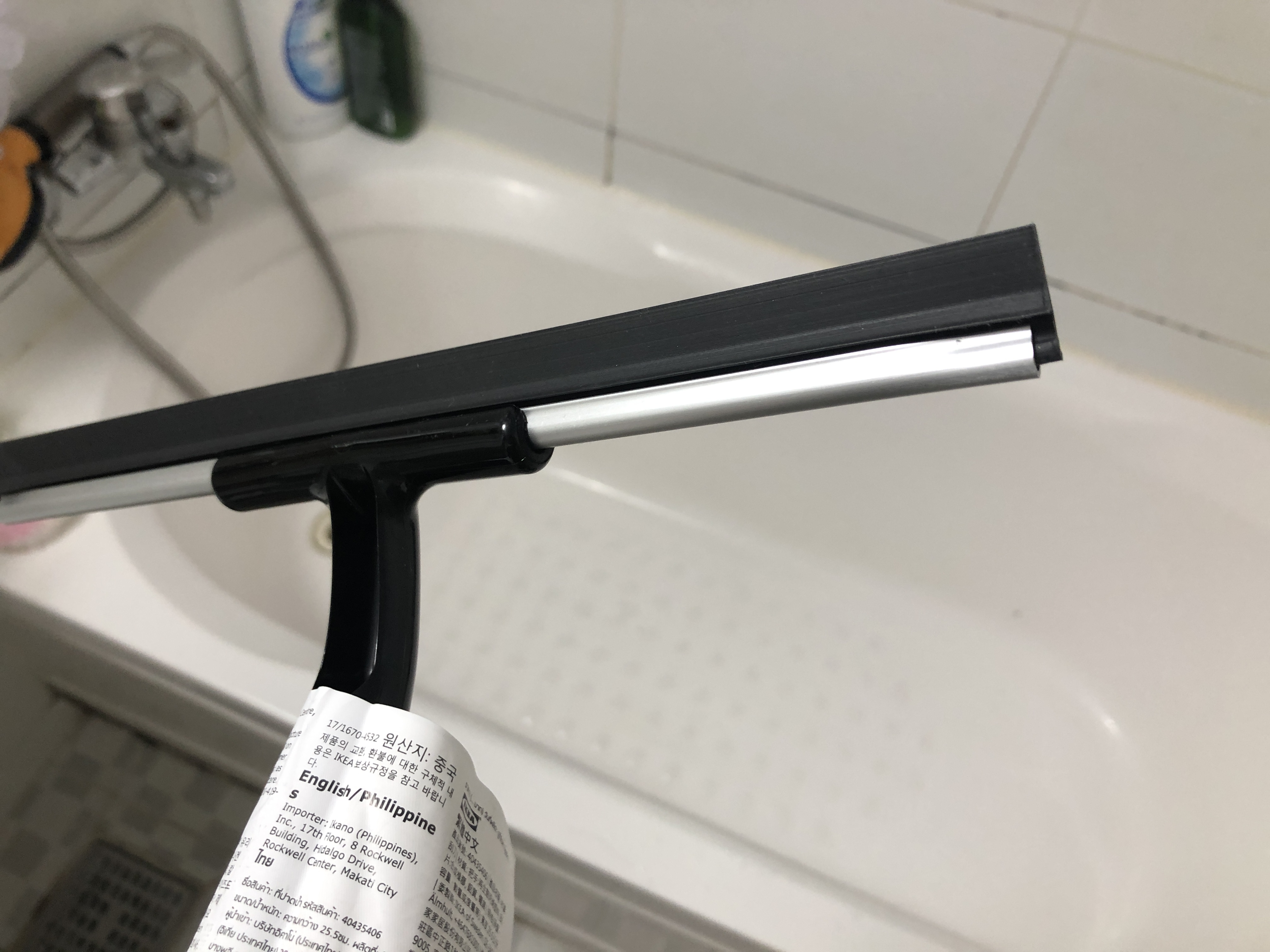 샤워를 하고 이케아 유리닦이로 화장실 벽면, 유리, 바닥을 닦으면 좋습니다. 위에서 아래도 닦아야지 반대로하다가는 욕조같은 플라스틱으로 된 부분이 손상될 수 있으니 참고하세요.