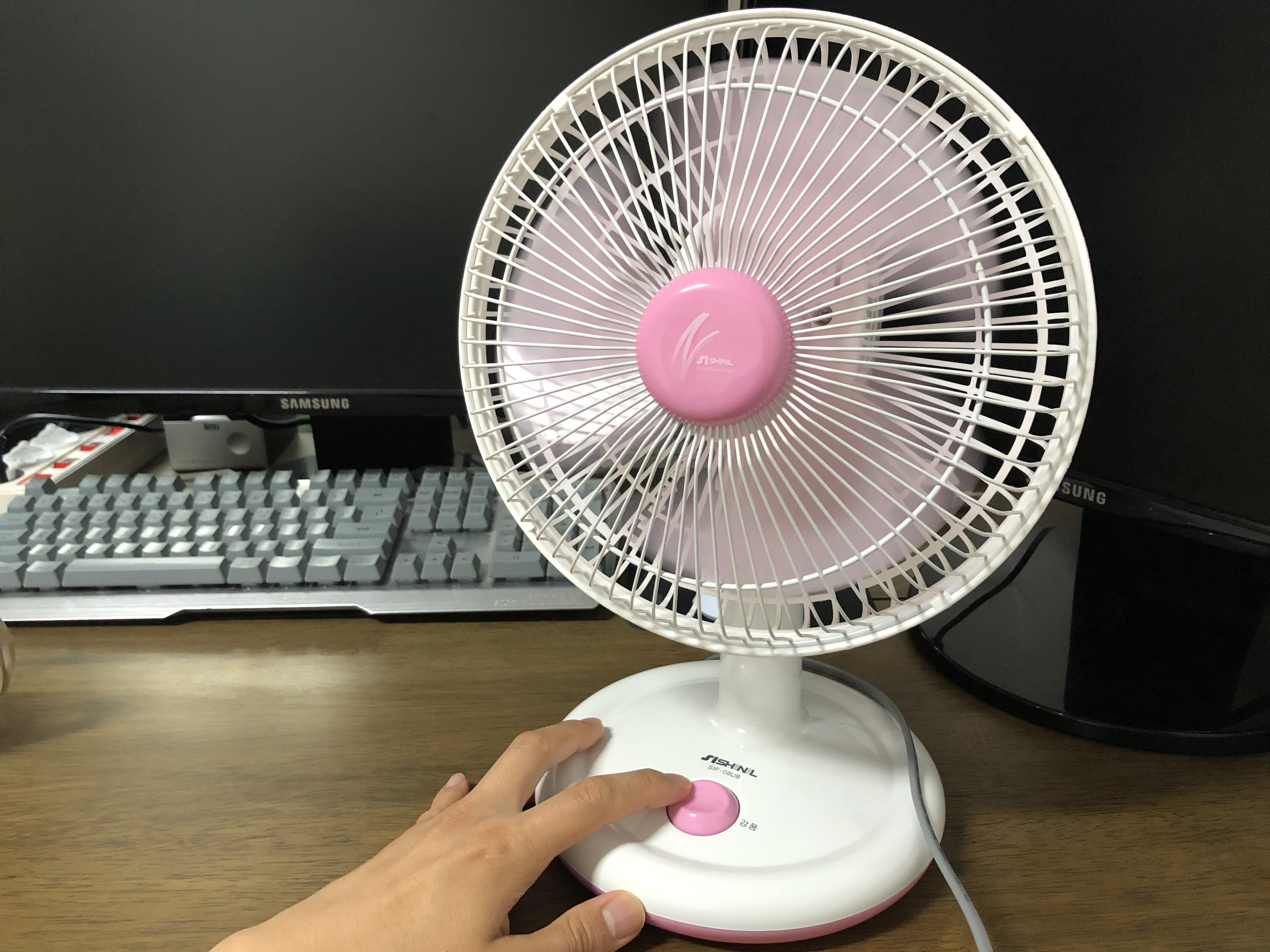 탁상용 신일 선풍기. 모델번호는 SIF-08UB. 이 제품은 좀 오래된 모델같고 요즘은 SIF-08BLC 모델로 생산되는 것 같습니다. 큰 차이는 없고 버튼 부분이 좀 다른 것 같습니다.