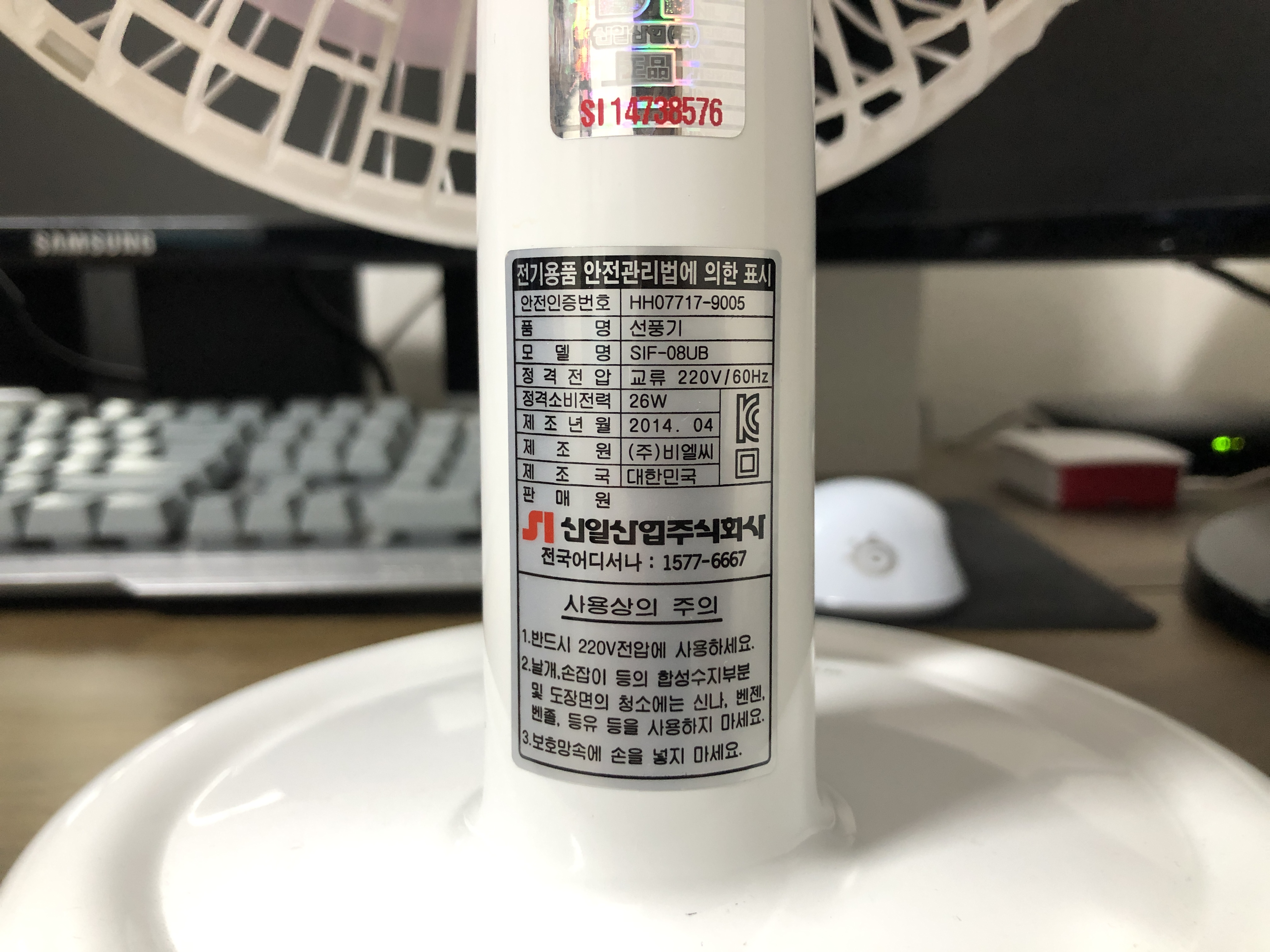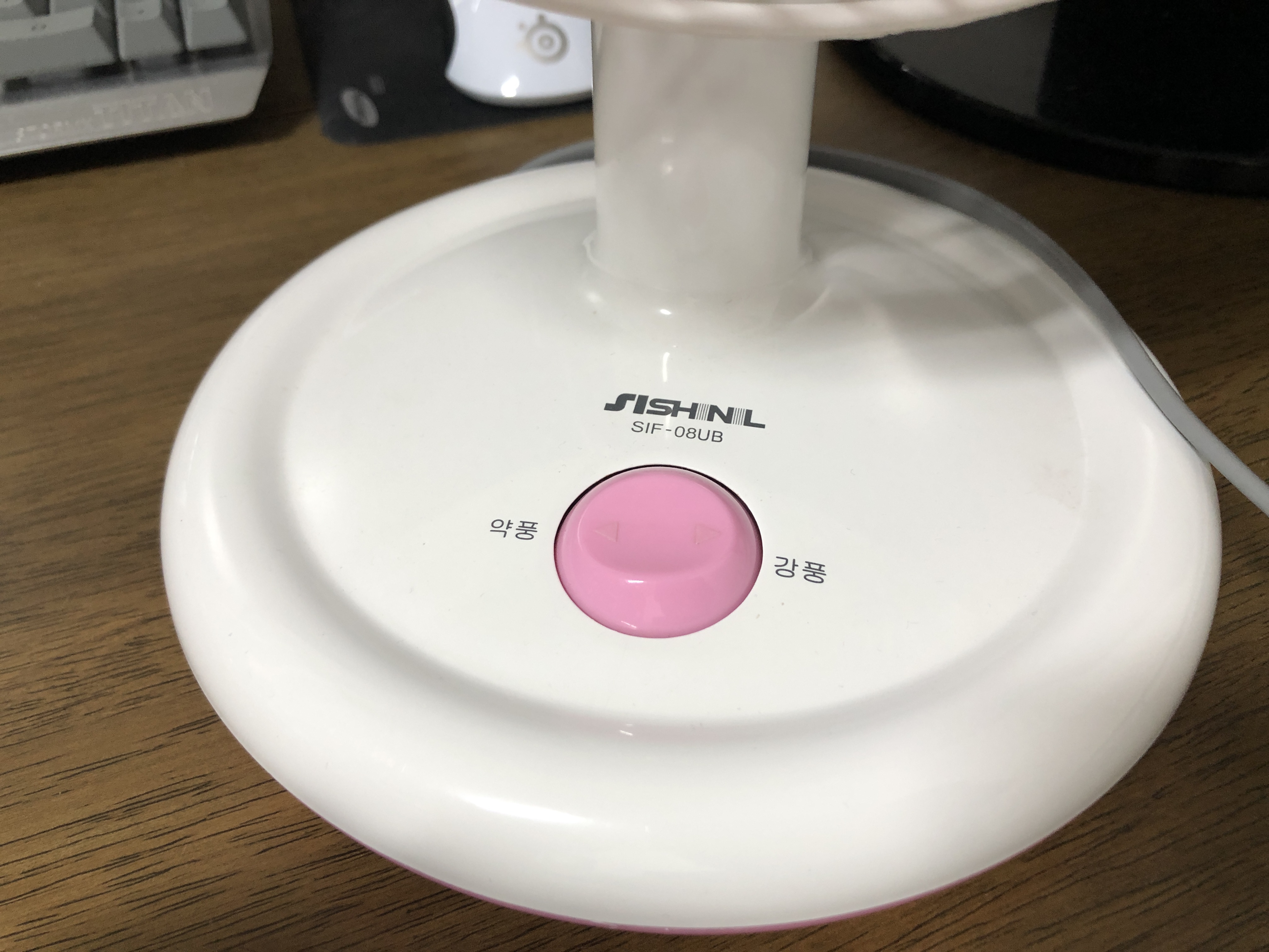 탁상용 신일 선풍기. 모델번호는 SIF-08UB. 이 제품은 좀 오래된 모델같고 요즘은 SIF-08BLC 모델로 생산되는 것 같습니다. 큰 차이는 없고 버튼 부분이 좀 다른 것 같습니다.