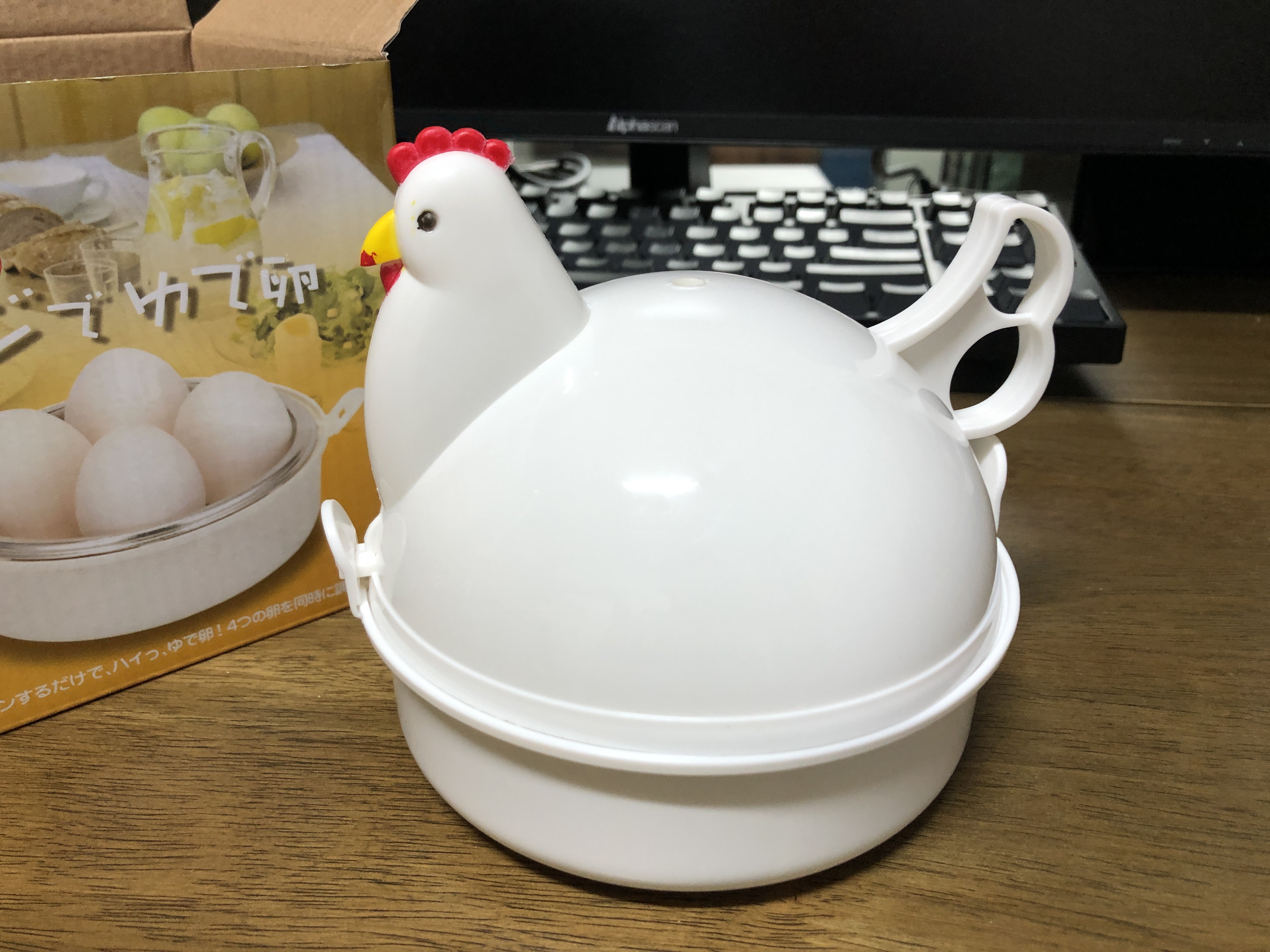 일본어지만 박스를 보면 대충 사용법을 짐작할 수 있습니다. 일단 제품 바닥에 물을 넣고 600W 전자렌지에서는 반숙 5분, 완숙 7분, 500W에서는 반숙 5분 30초, 완숙은 8분입니다. 참 쉽죠~ 이렇게 시간에 맞게 돌려도 달걀을 꺼지지 않고 오랫동안 뜨겁게 방치해두면 반숙이 완숙이 됩니다. 몇 번 해보면 최적의 타이밍을 알게 됩니다. ㅎㅎ