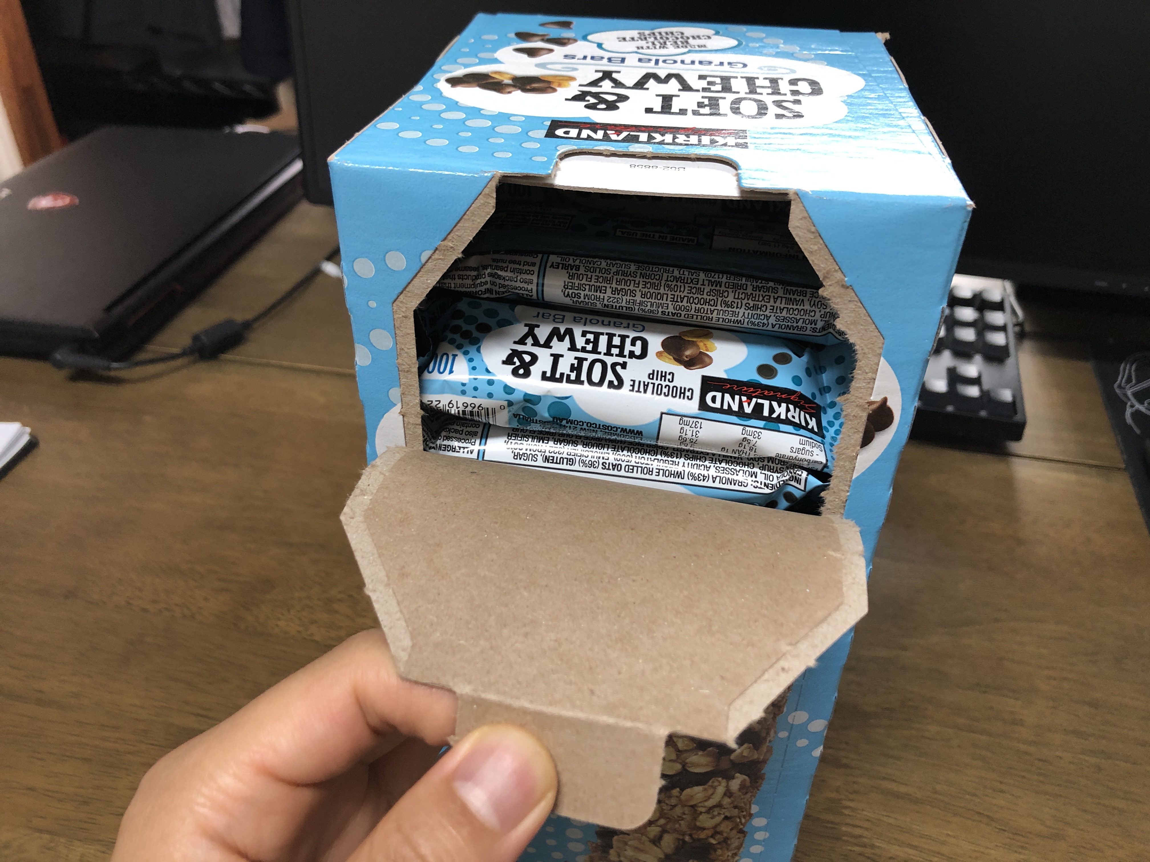 커클랜드 시그니처 SOFT & CHEWY 그래놀라바. 우리 집에 있는 아이, 어른 모두가 좋아하는 그런 맛입니다. 조금 예민한 아이는 끝 맛이 조금 이상하다고 하는데 저도 약간은 동의합니다. 지금 2번째 구매했는데 아직까지는 질리지 않고 잘 먹고 있습니다. 배고플 때 간식으로 좋아요.