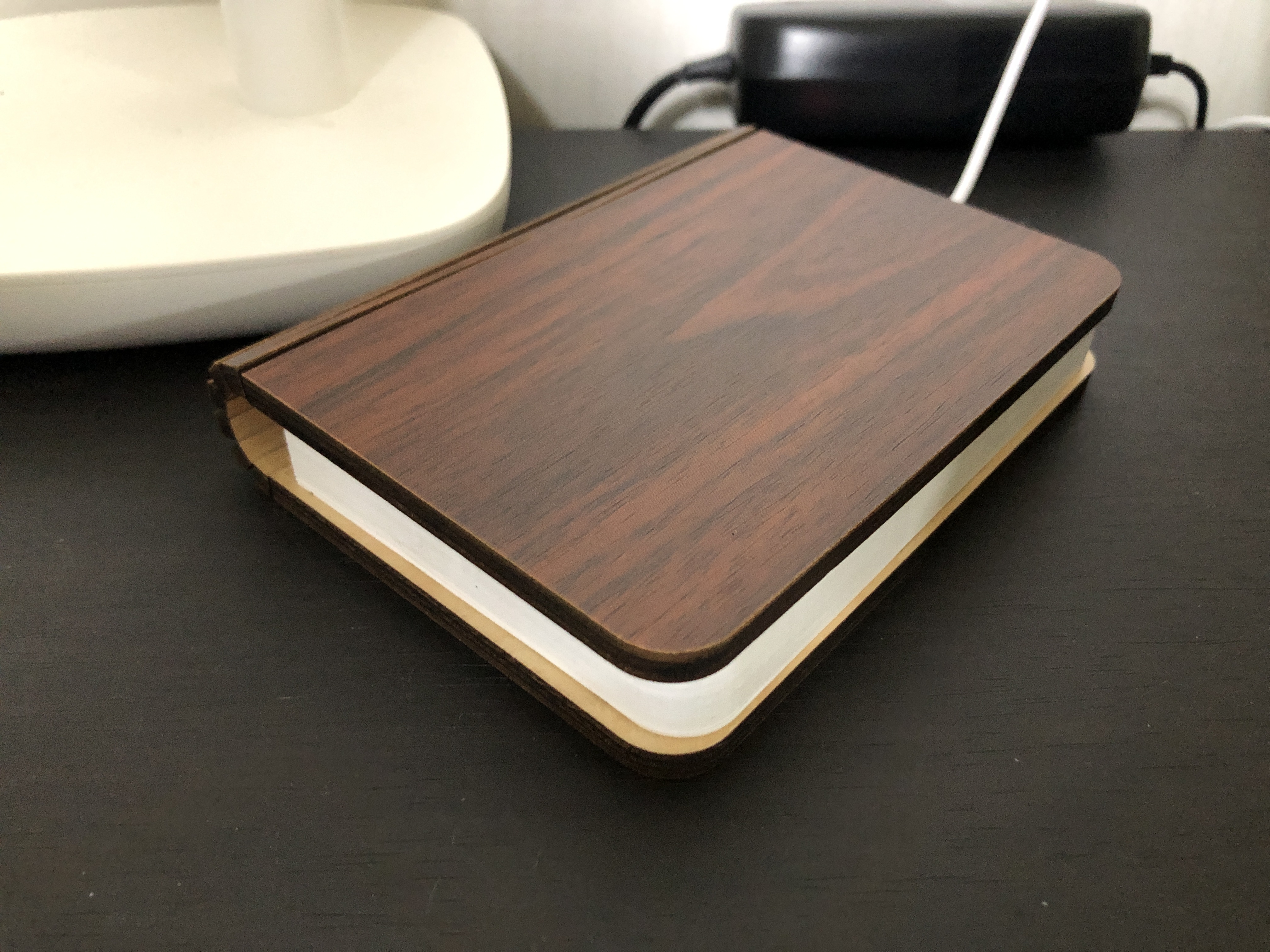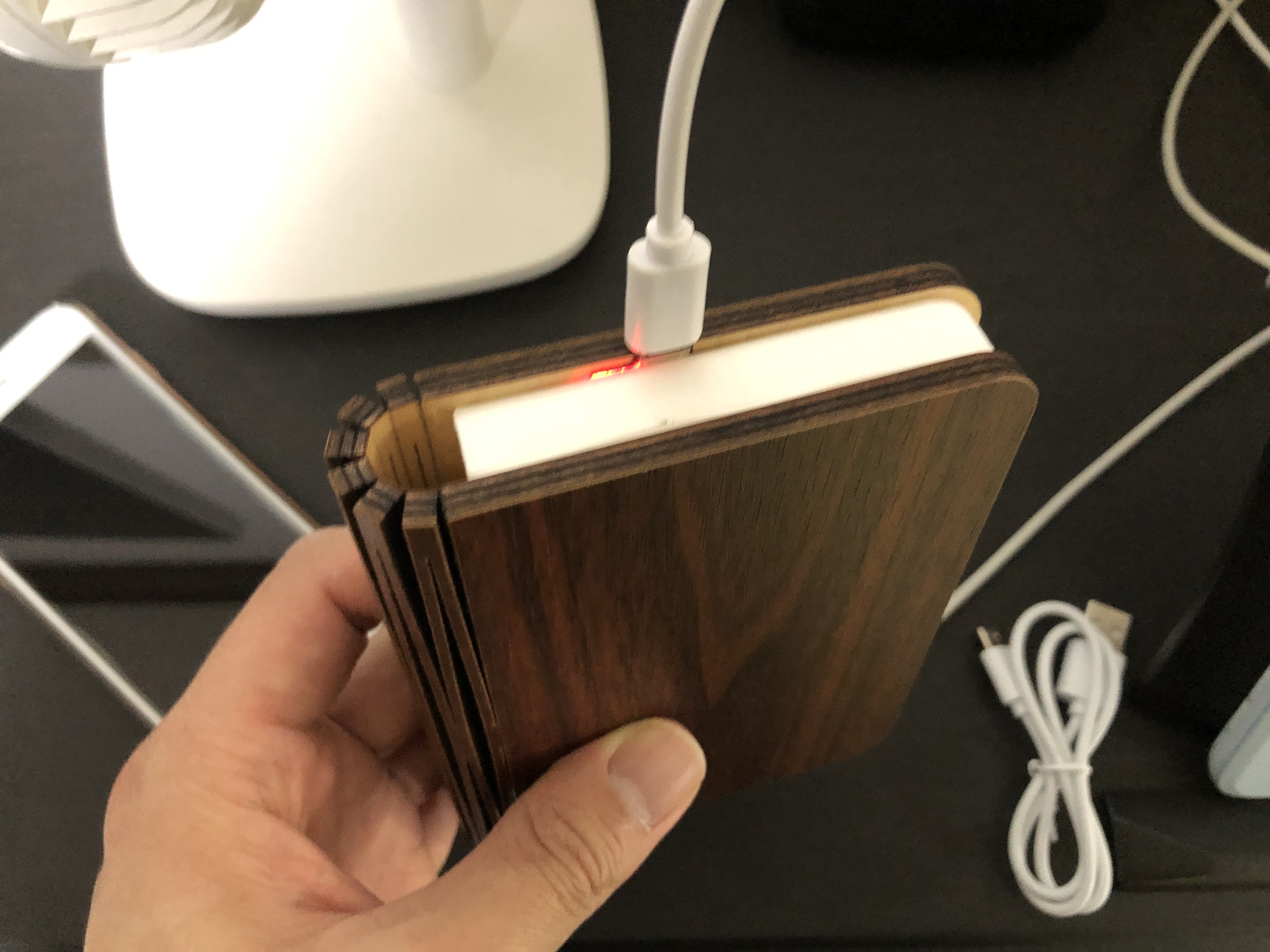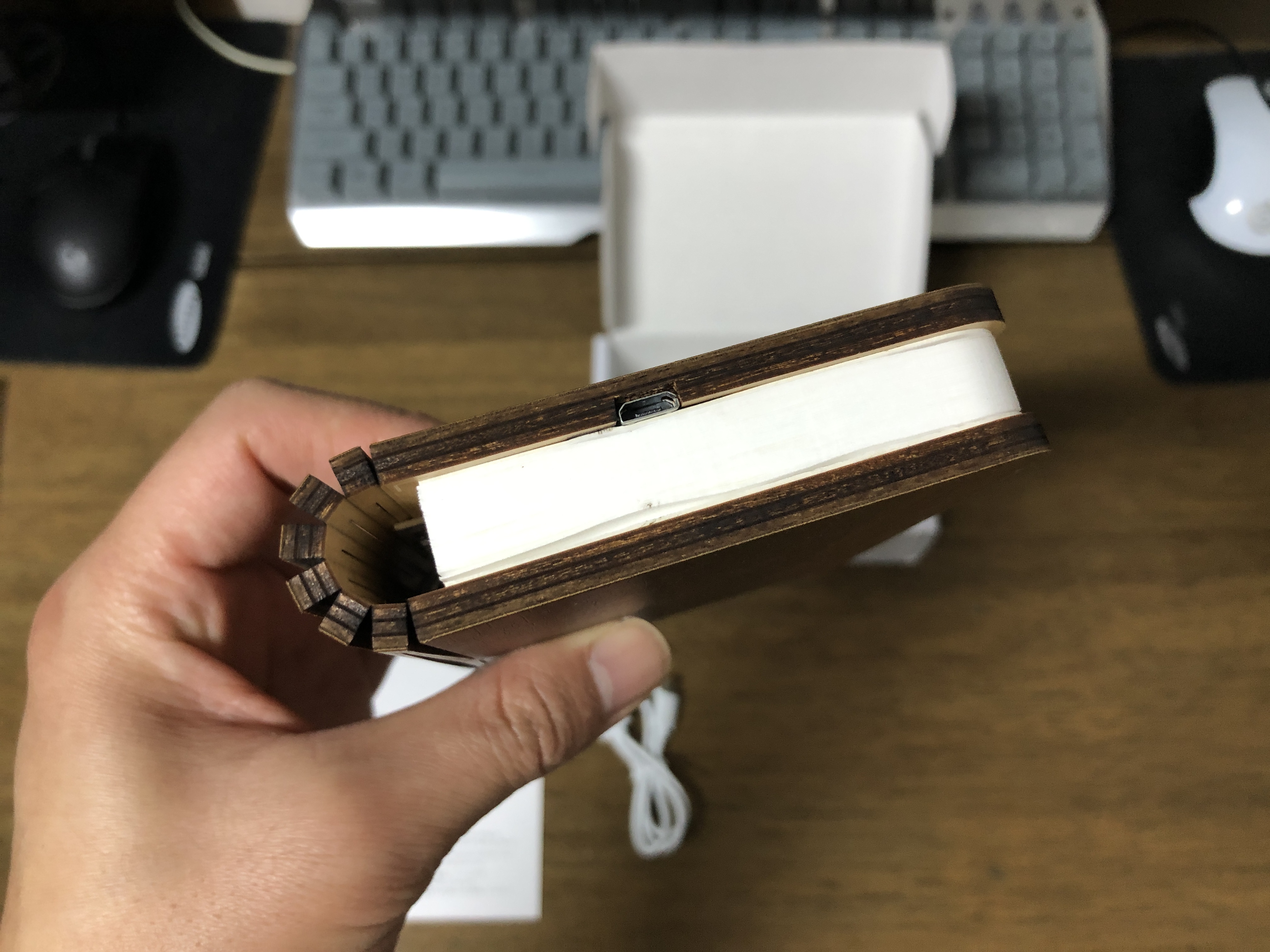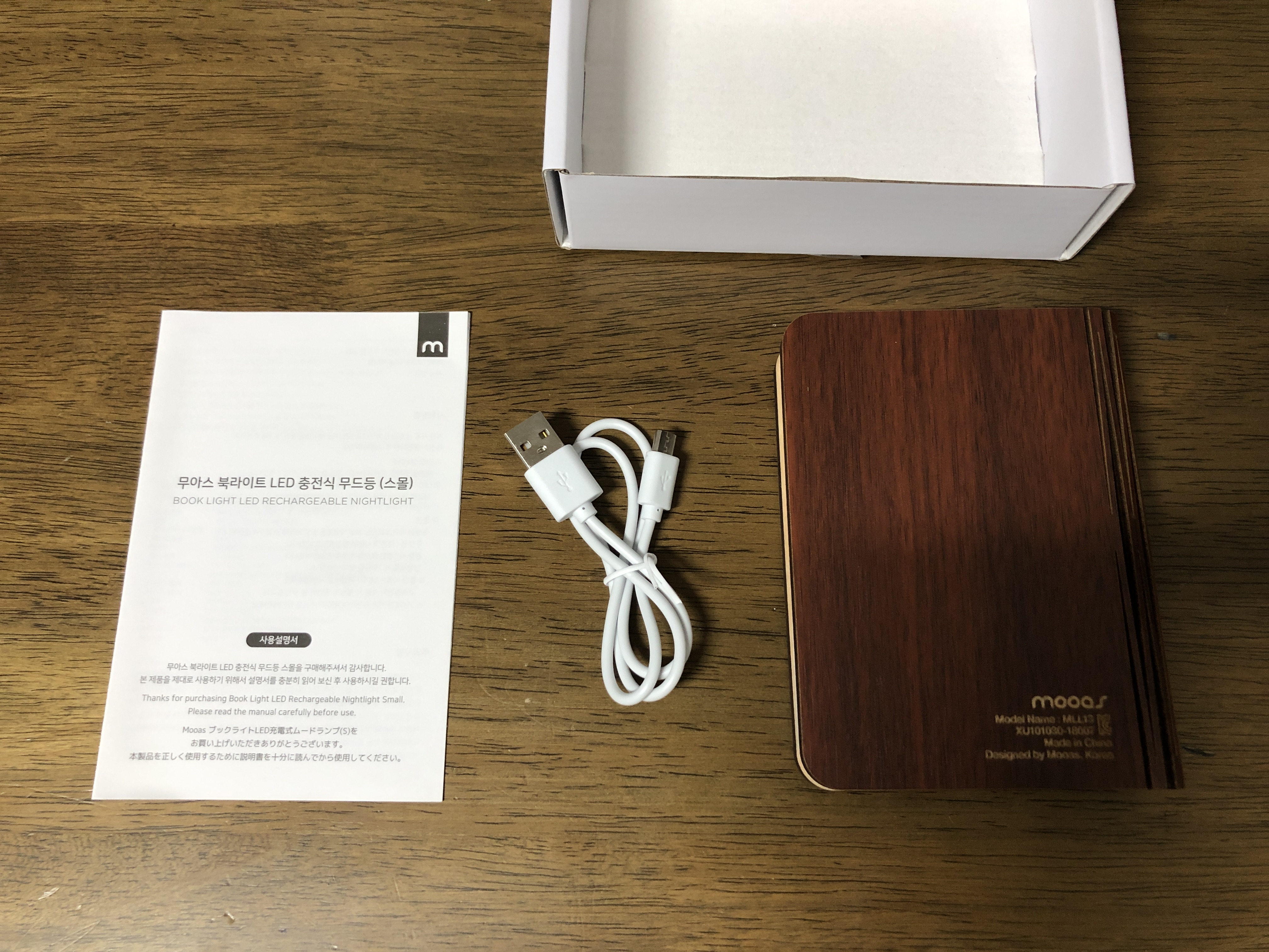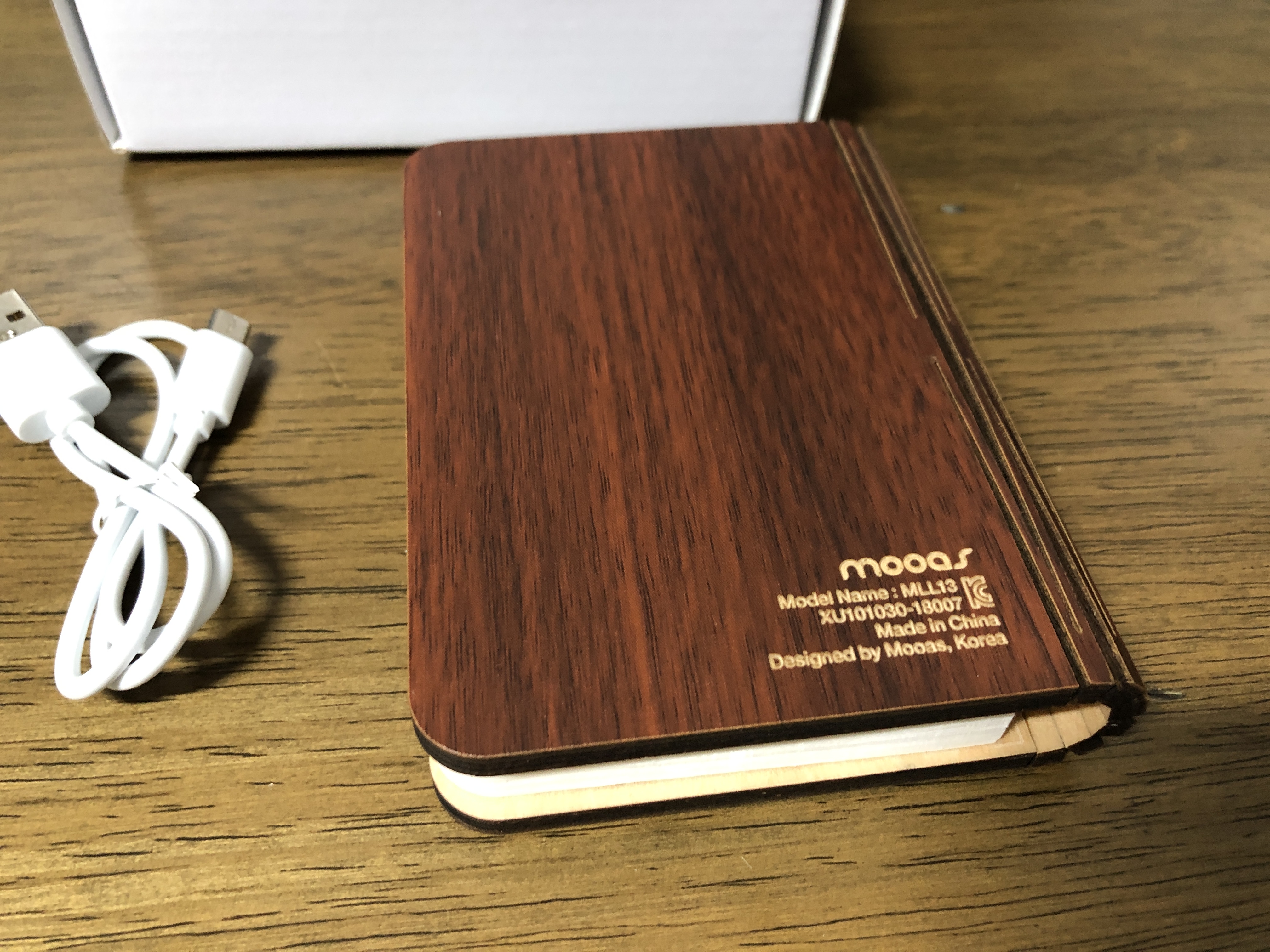 이게 바로 무아스 북라이트 LED 충전식 무드등 입니다. 겉이 나무로 되어 있어서 좀 있어 보이네요.