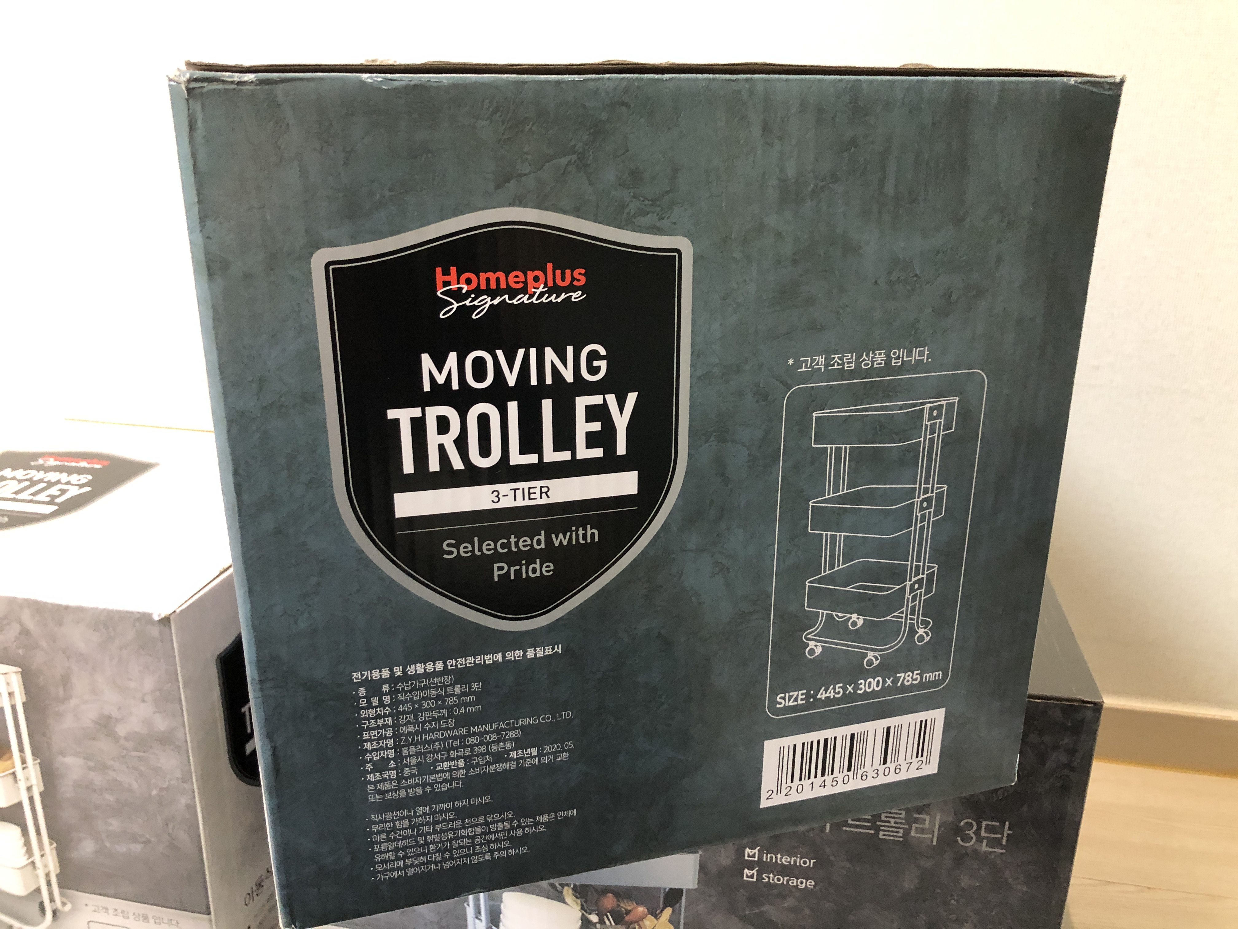 홈플러스 시그니처 이동식 트롤리 3단을 개봉한 모습