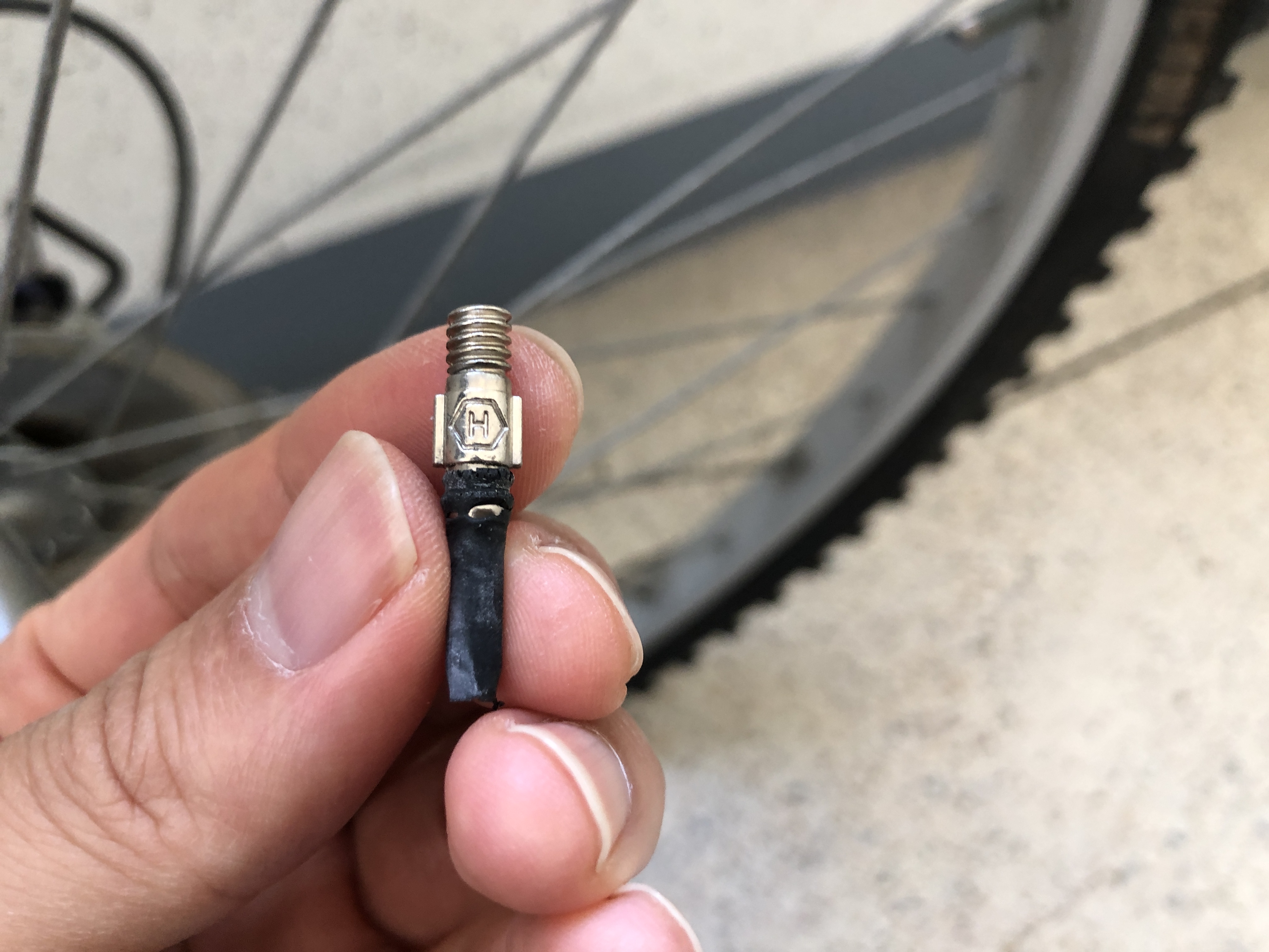 오래된 무시고무가 낡아서 구멍이 난 것을 볼 수 있습니다. 자전거 타이어는 괜찮은데 이상하게 바람이 자주 빠진다면 이 무시고무를 의심해볼 수 있습니다.