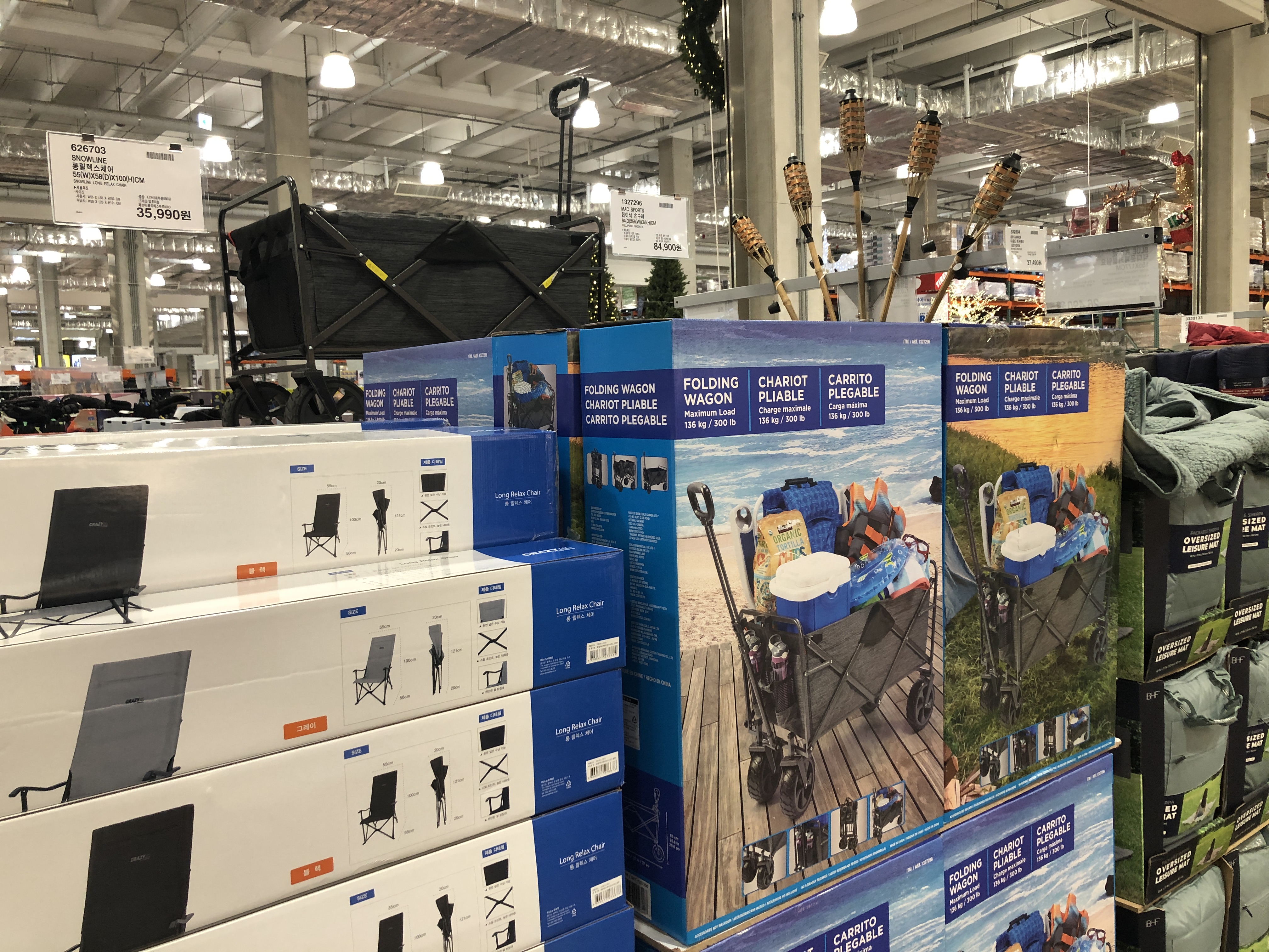 코스트코 MAC SPORTS 접이식 손수레. 코스트코 갈 때마다 할인하기만을 기다리다 지쳐 그냥 정가 주고 샀습니다. 가격은 84,900원. 아마도 제가 샀으니 조만간에 할인할 것 같은 느낌이 드네요. 할인을 기다리는 것도 한 방법이지만, 계단이 없고 엘리베이터가 잘 되어있는 곳에 무거운 물건을 많이 옮기시는 분이라면 바로 카드에 담으시기 바랍니다. 삶의 질이 올라갑니다.