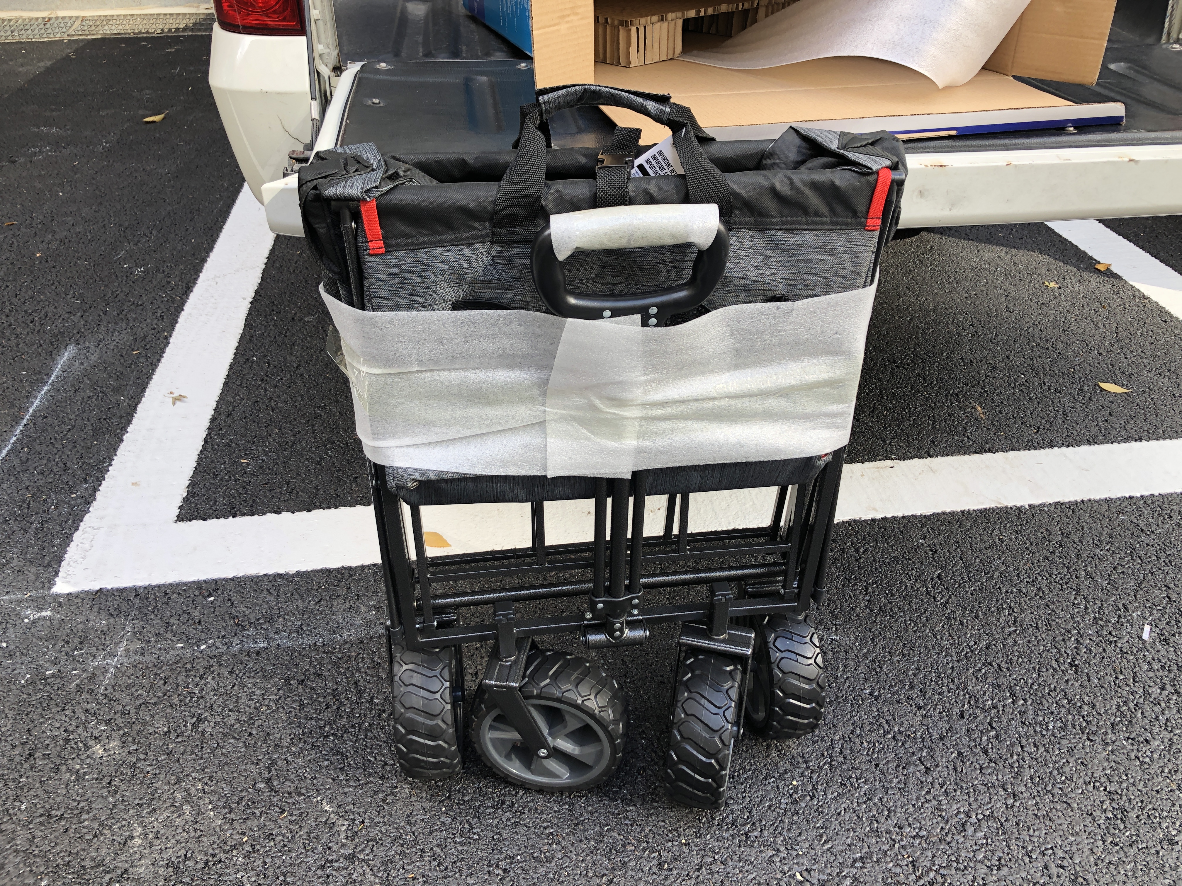 코스트코 MAC SPORTS 맥스포츠 접이식 손수레. 정말 마음에 드는 물건입니다. 한 달 넘게 쓰고 있는데 벌써 본전을 뽑은 것 같네요. 코스트코 장 본 걸 옮길 때는 물론 아파트 쓰레기 분리수거할 때도 큰 역할을 수행합니다.