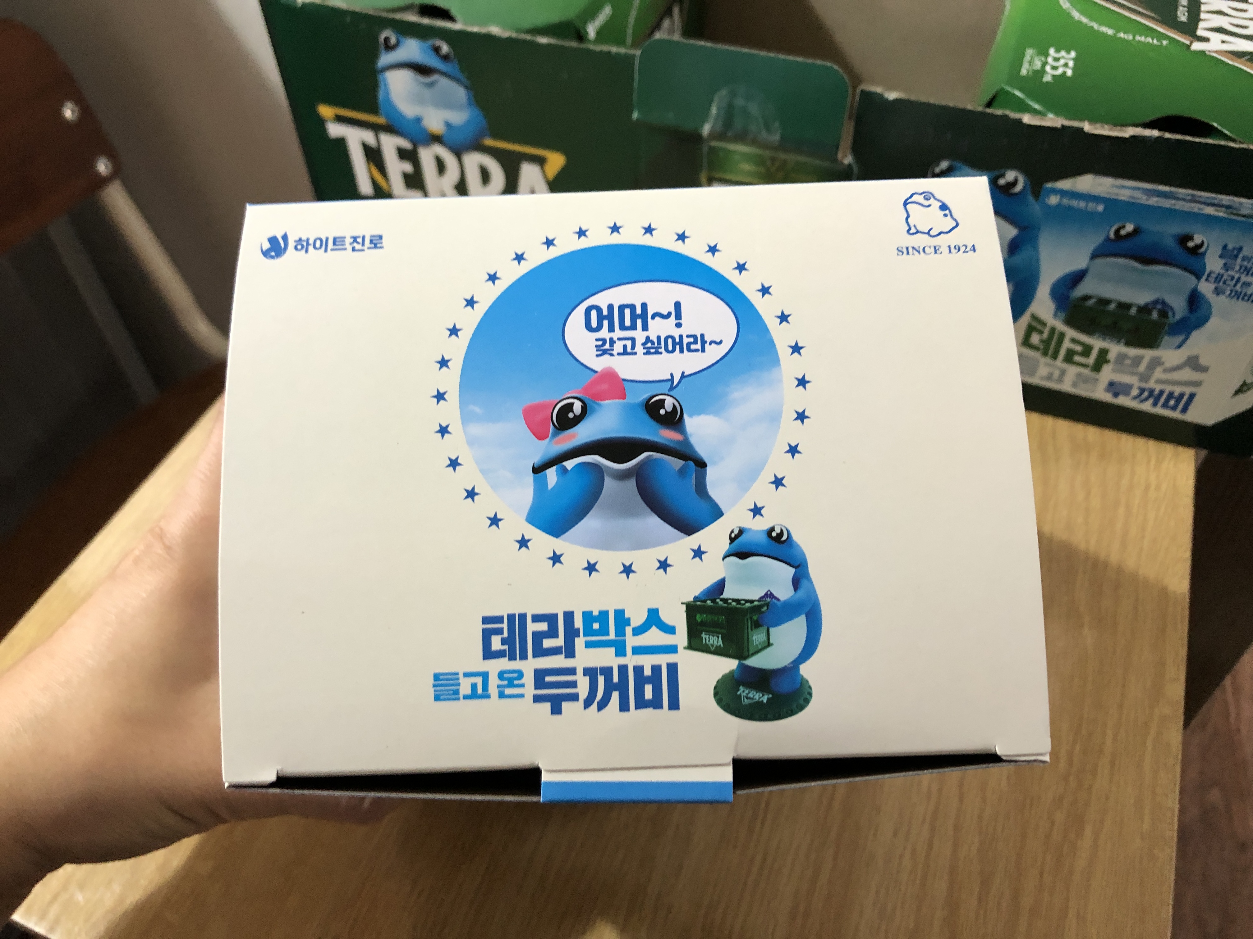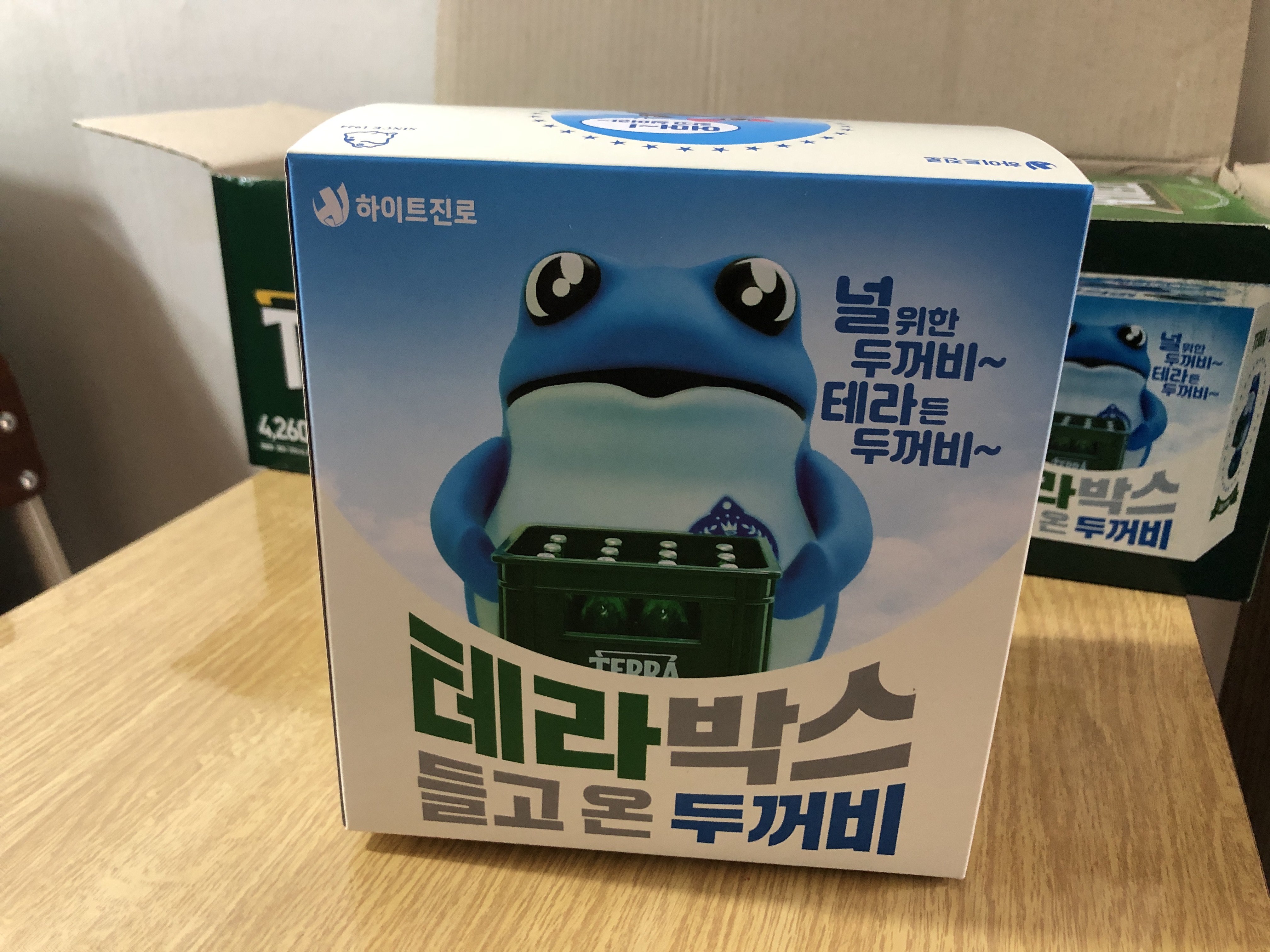 테라 박스 들고 온 두꺼비 (테라 맥주 두꺼비 피규어) 본문