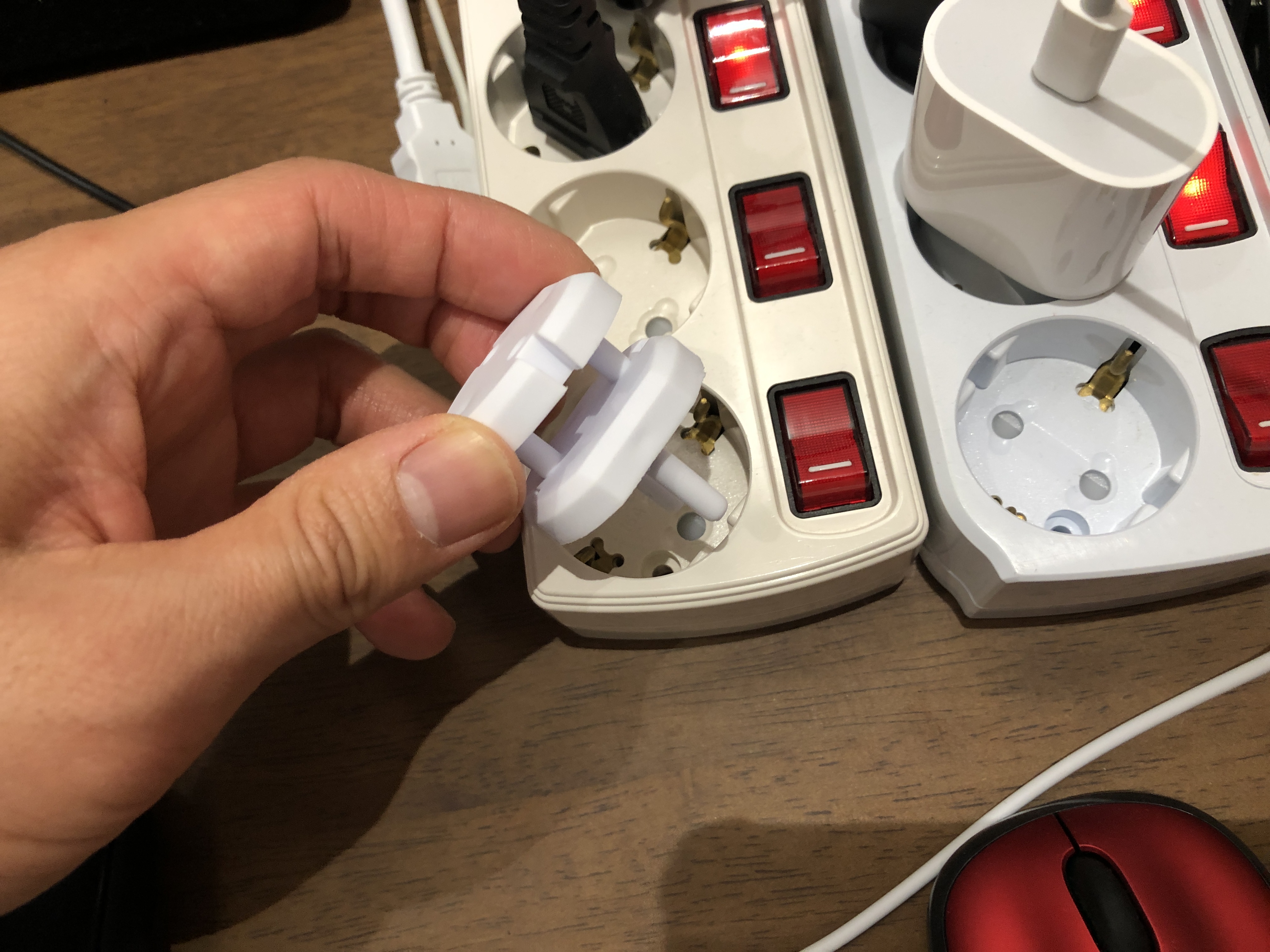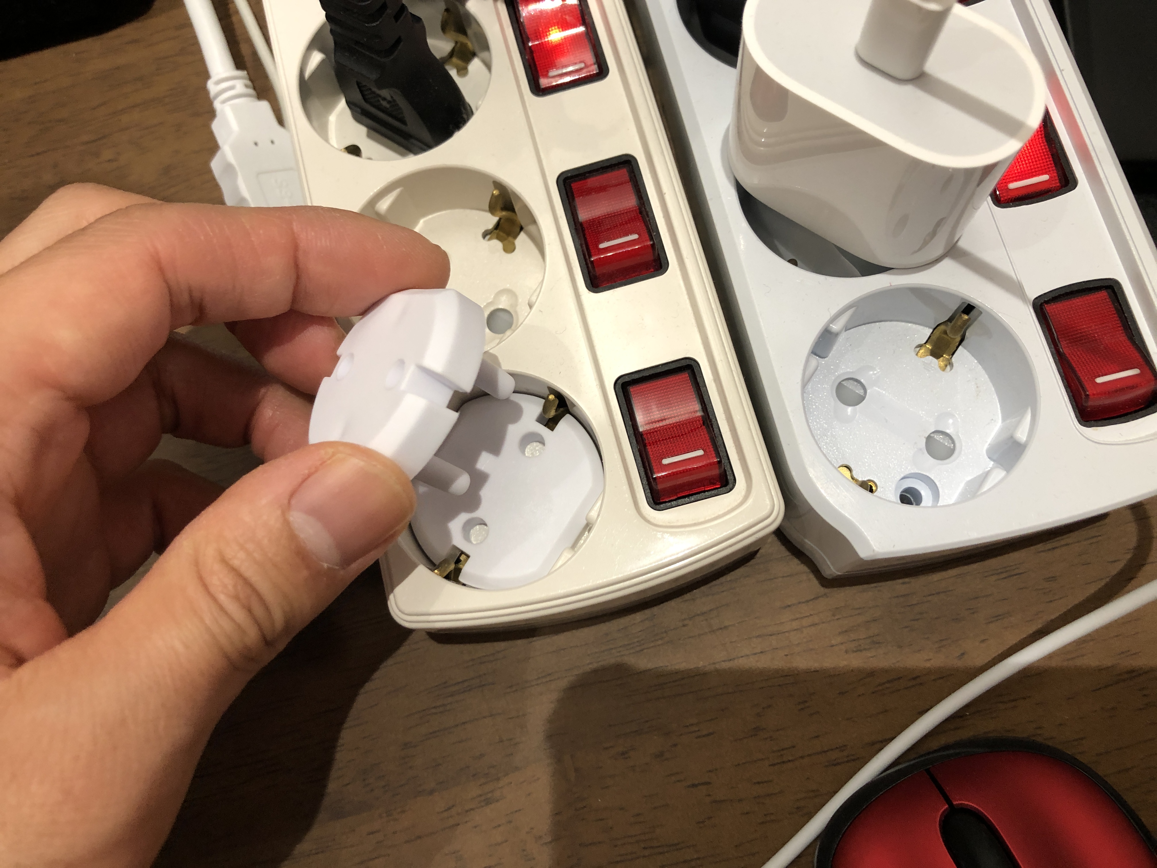 콘센트 마개를 제거할 때는 똑같은 제품을 끼워서 뺄수도 있고 그냥 아무 콘센트를 꼽아서 뺄수도 있습니다. 어쩌면 이 편리함이 잠재적 위험으로 작용할지도 모르겠습니다. 아이가 마개를 뺄 확률이 있으니까요. 이게 걱정이라면 다른 제품을 골라야 할 듯합니다.