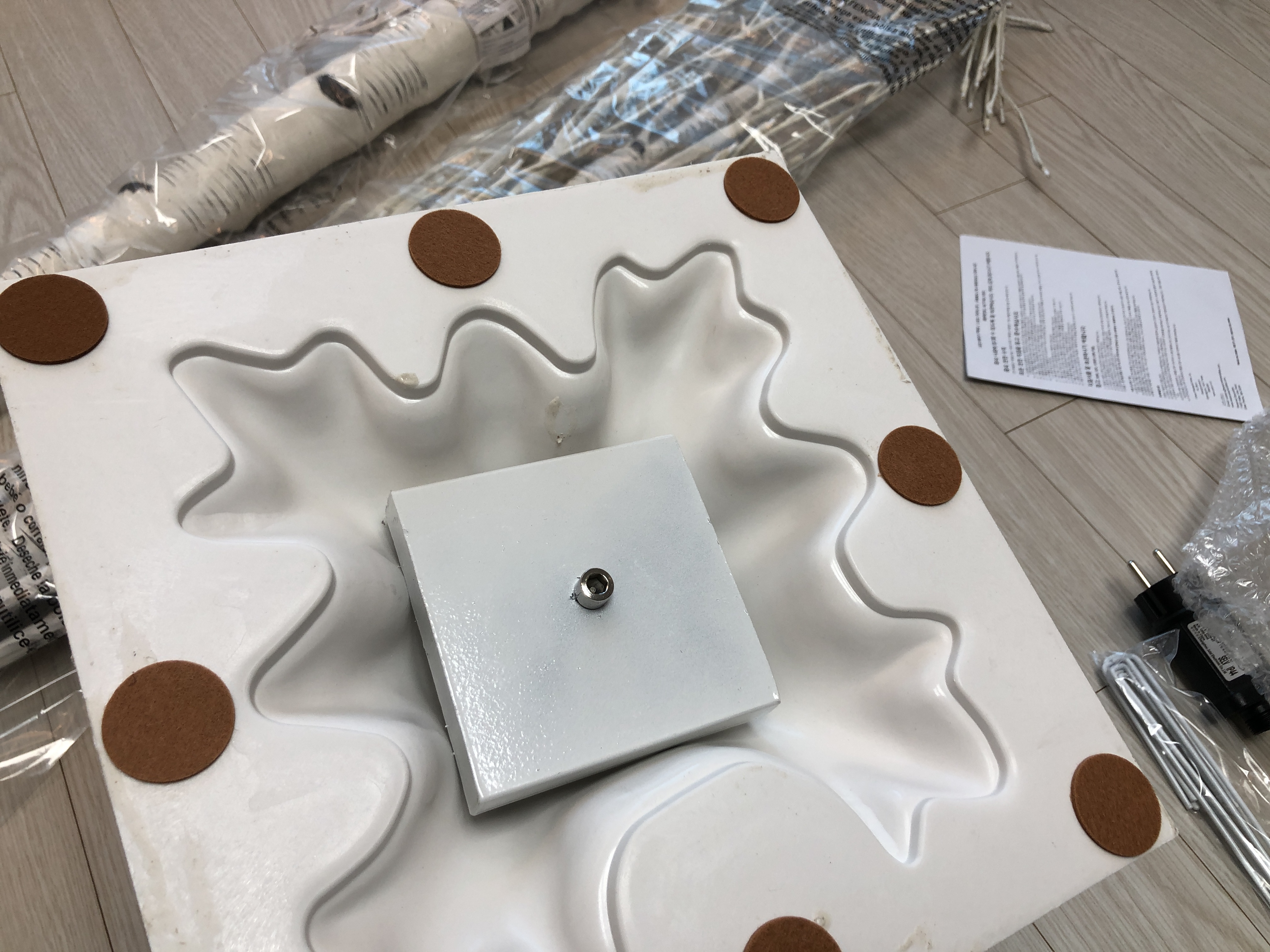 트리 받침대 바닥 마감상태가 별로라 바닥보호 부직포를 여러 개 붙였습니다. 부직포를 바르면 트리를 쉽게 밀어서 이동할 수 있어서 매우 편합니다.