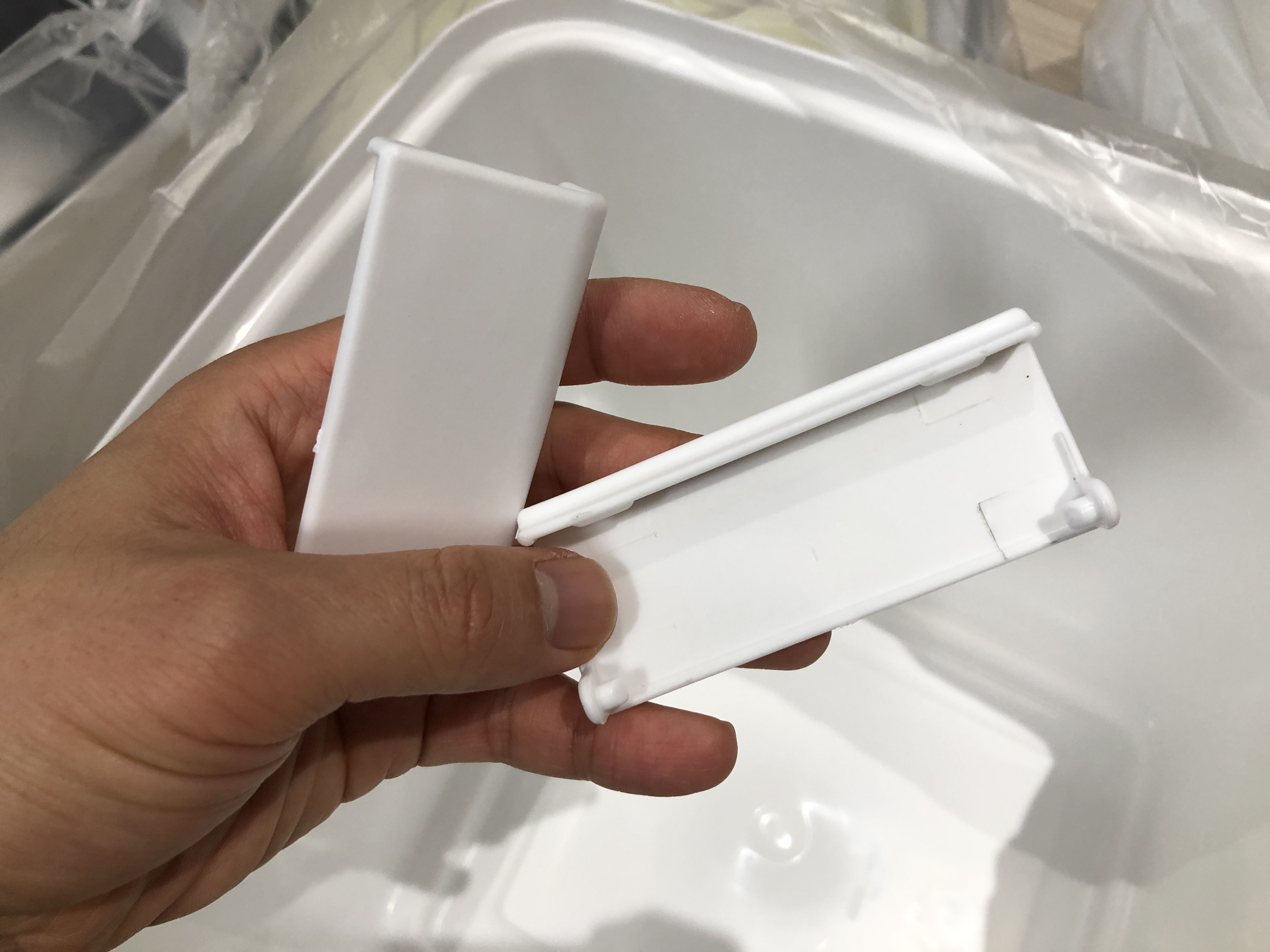 분리수거함 속을 보면 플라스틱 조각 2개가 있는데 이걸로 본체와 뚜껑을 연결합니다.