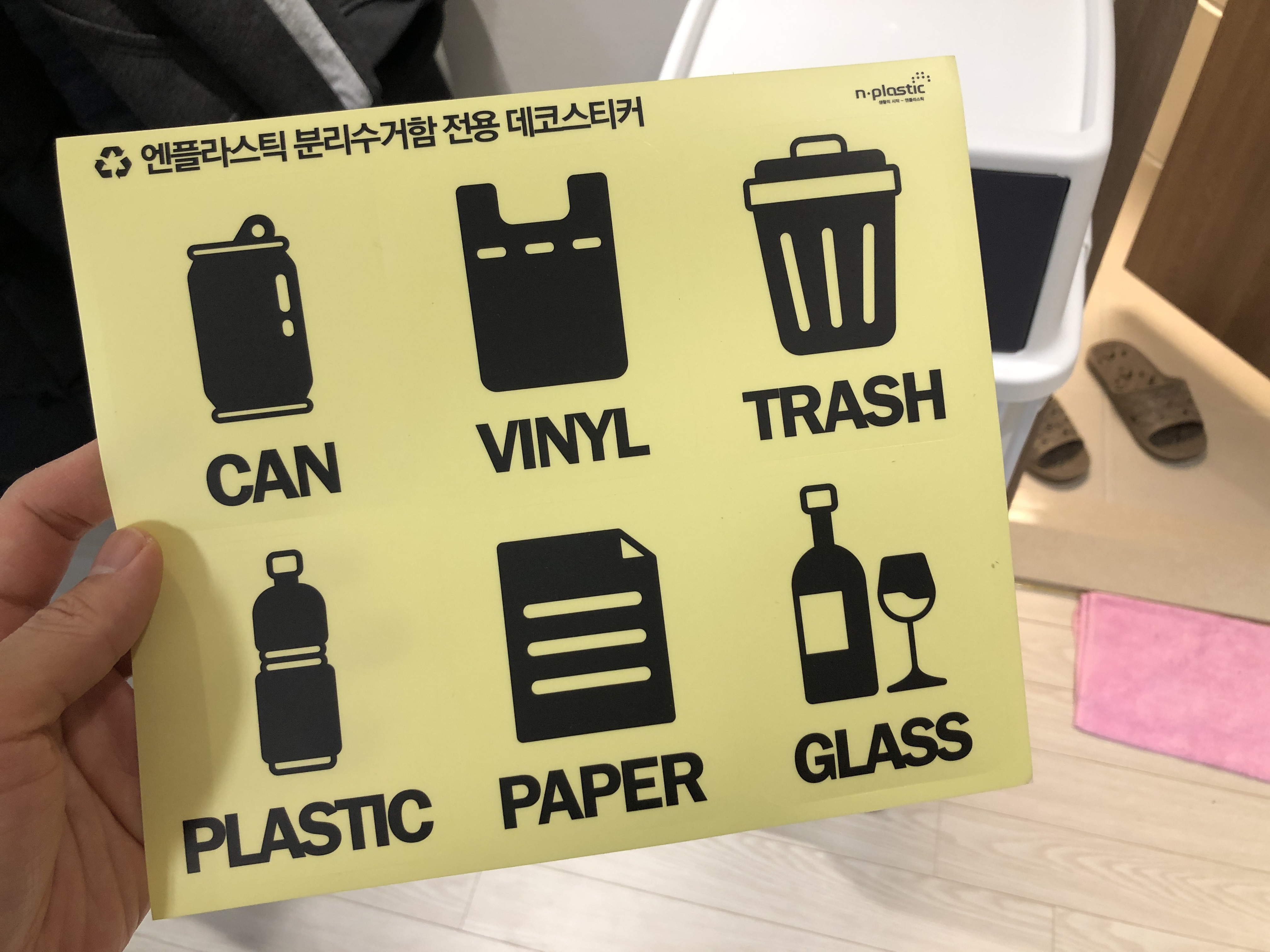 재활용 물건을 표시할 수 있는 스티커가 포함되어 있습니다.