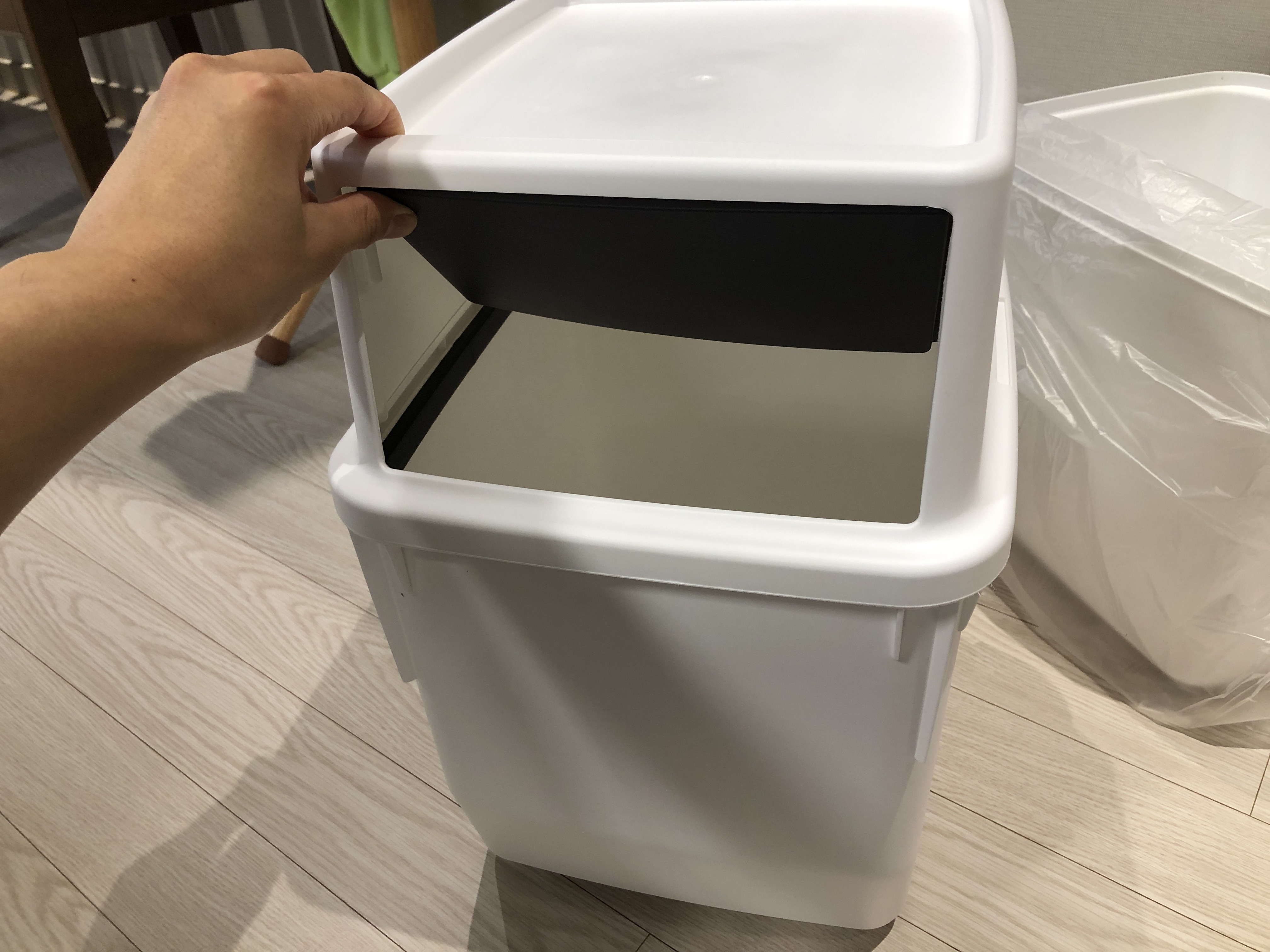 분리수거함 도어를 손으로 밀면 열립니다. 스프링이 달려있는지 약간 힘을 주어야 열립니다.