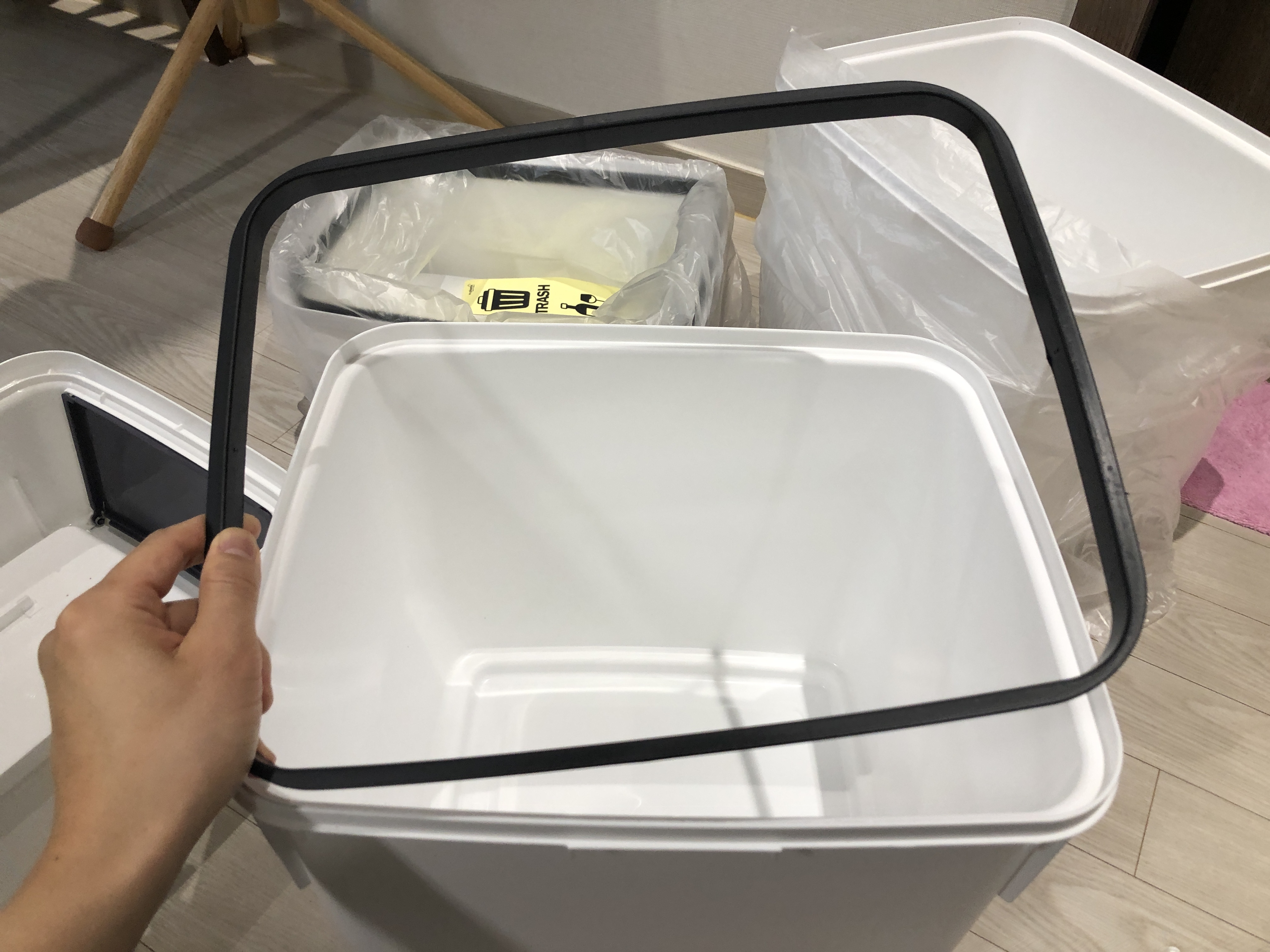 분리수거함에 끼울 수 있는 플라스틱 테두리가 있는데 이건 전용 비닐 봉투를 사용할 때 필요할 것 같네요.