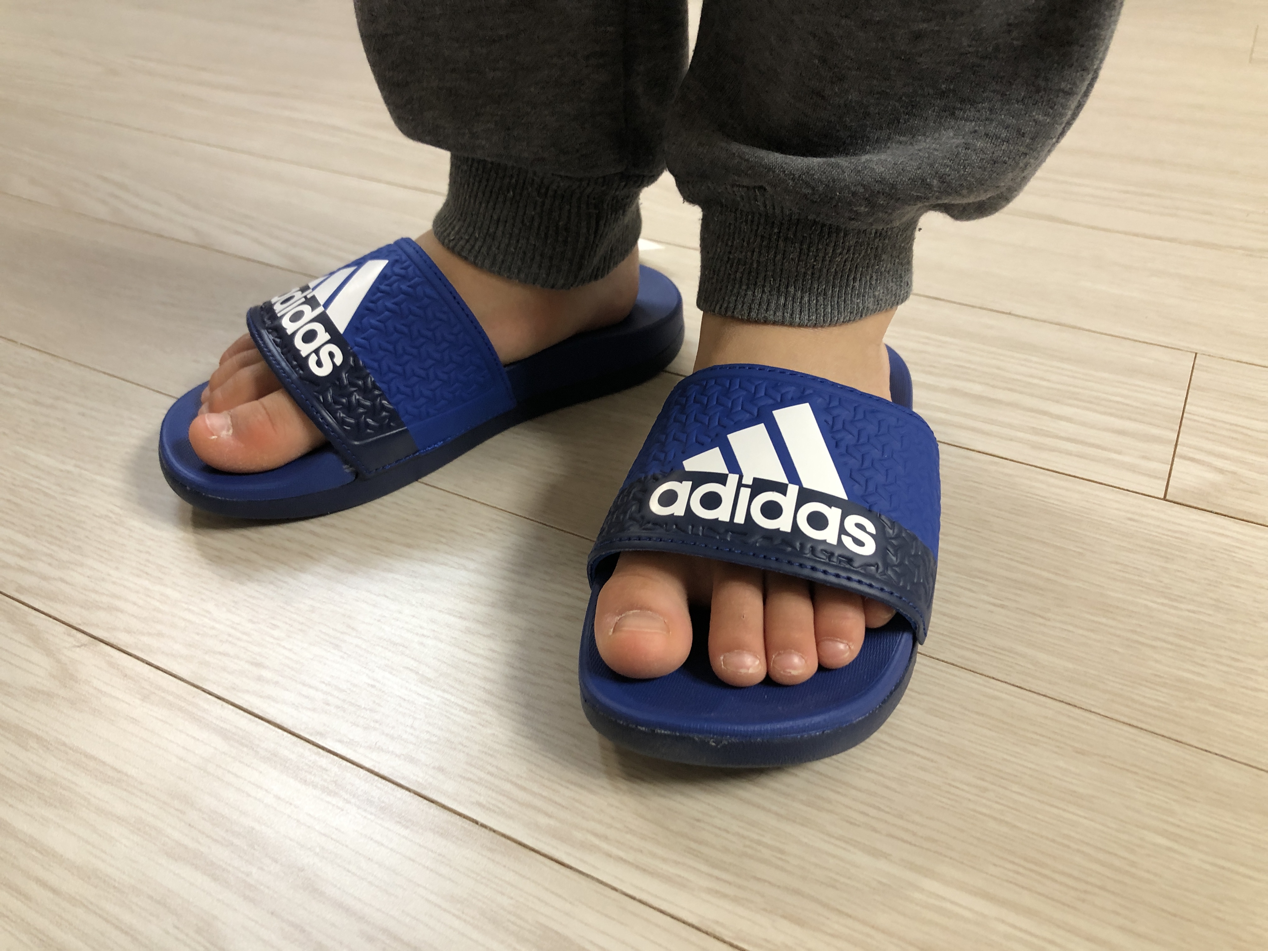5세 어린이가 아디다스 키즈 아딜렛 컴포트 K 슬리퍼를 작용한 컷입니다. 딱 맞는 것처럼 보여도 빨리 가다 보면 발가락이 자꾸만 앞으로 튀어나옵니다. 혹시나 신겨보고 층간소음 예방용으로 쓸 수도 있지 않을까 생각했는데 그건 아닌 것 같네요. 소음이 좀 납니다. 그냥 밖에서 신어야 할 듯합니다.