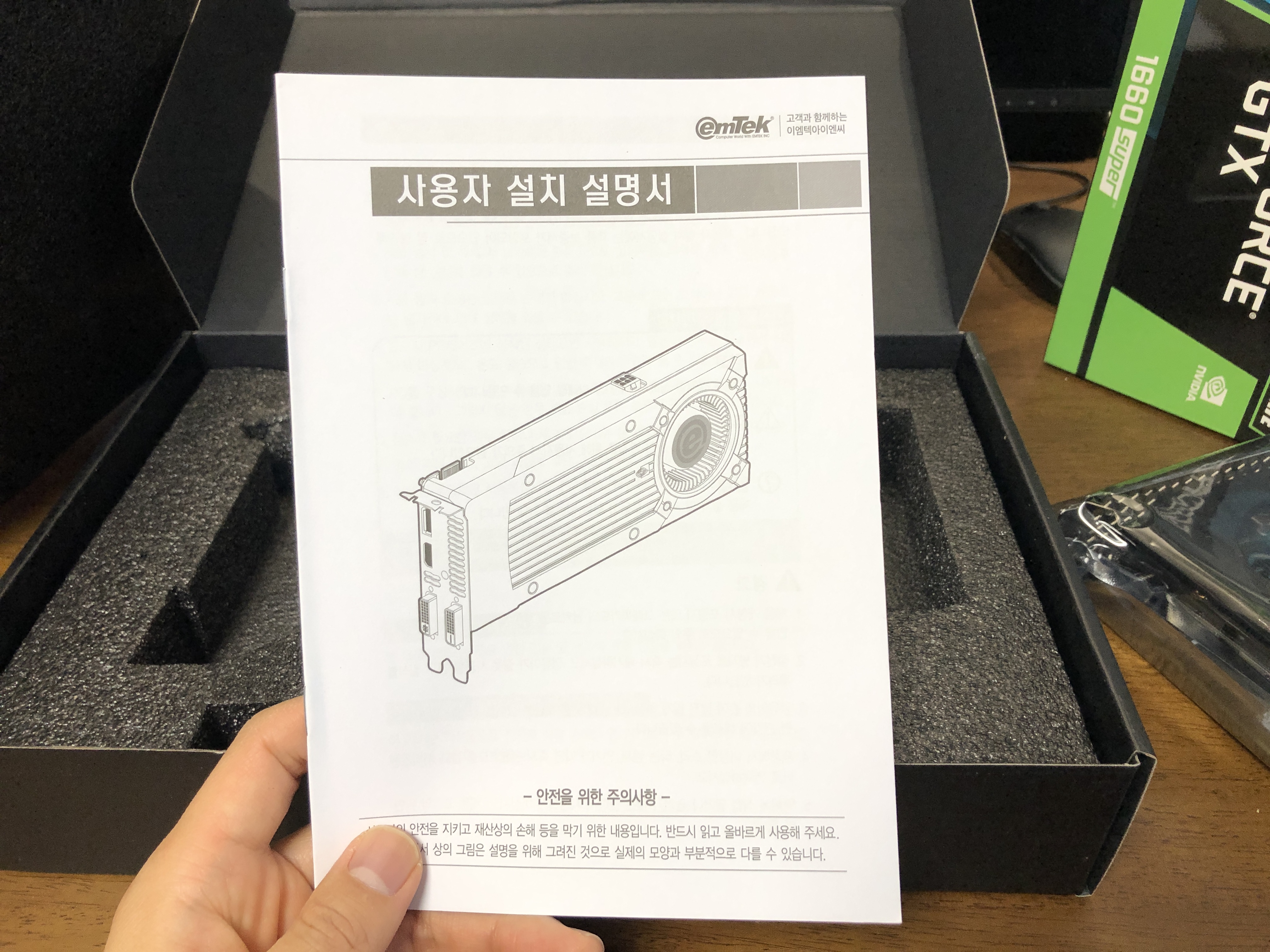 이엠텍 지포스 GTX 1660 SUPER를 개봉한 모습