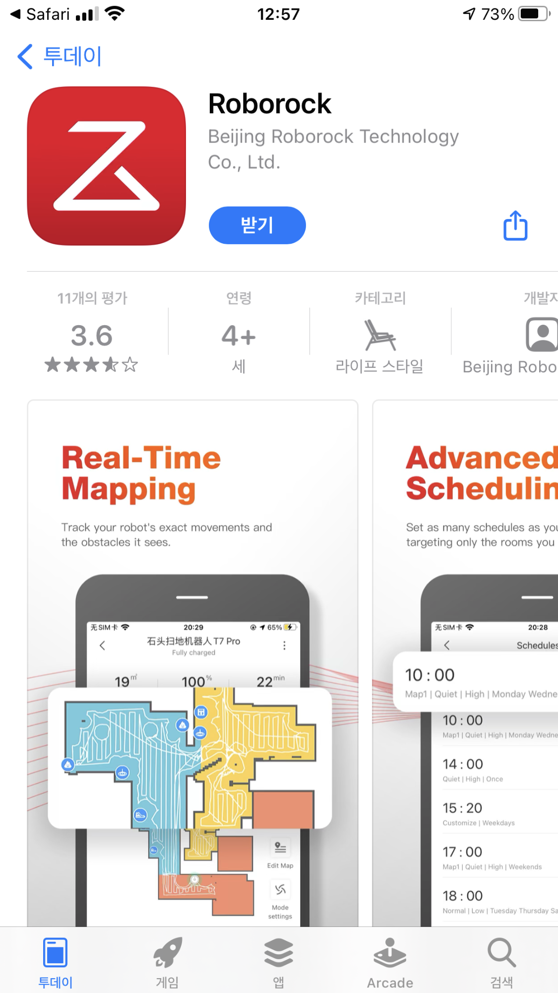 로보락(Roborack) 앱을 다운받아 제품을 등록 후 사용하면 스마트폰으로 로봇청소기를 제어할 수 있습니다.