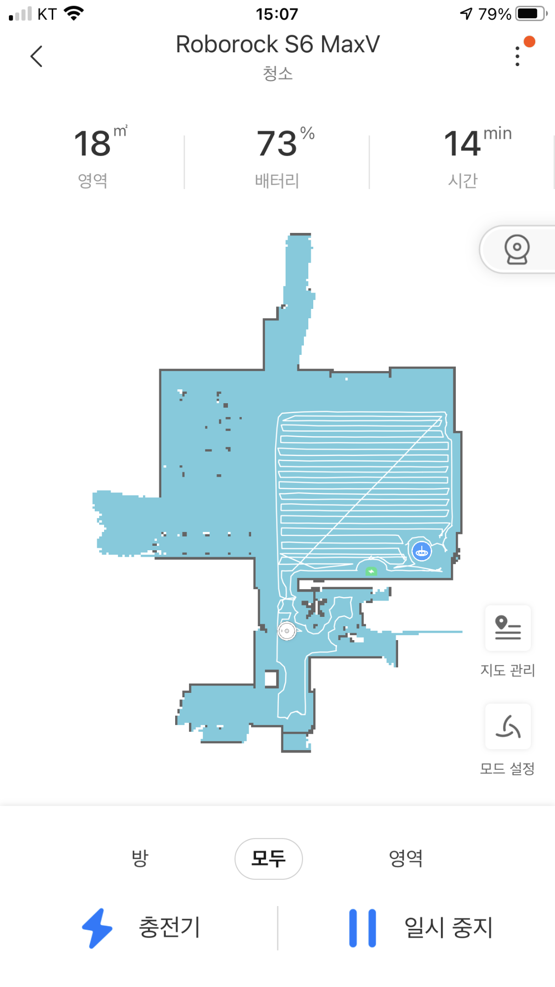 청소를 한 경로는 앱으로 확인할 수 있습니다. 이게 참 신기하네요.