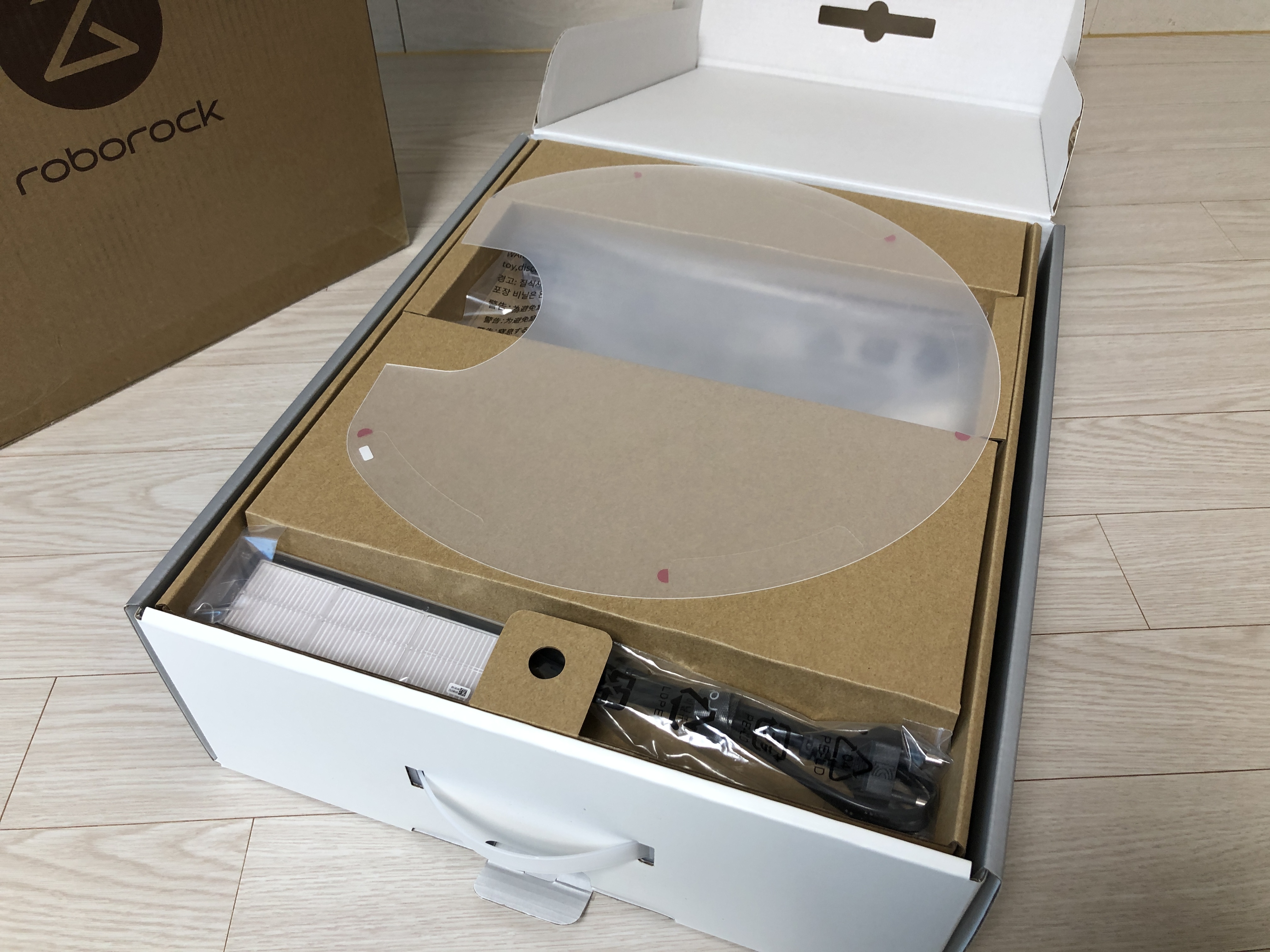 개봉을 했을 때 보이는 투명한 플라스틱 판은 방습 매트로 물걸레가 바닥 손상하는 걸 막습니다.