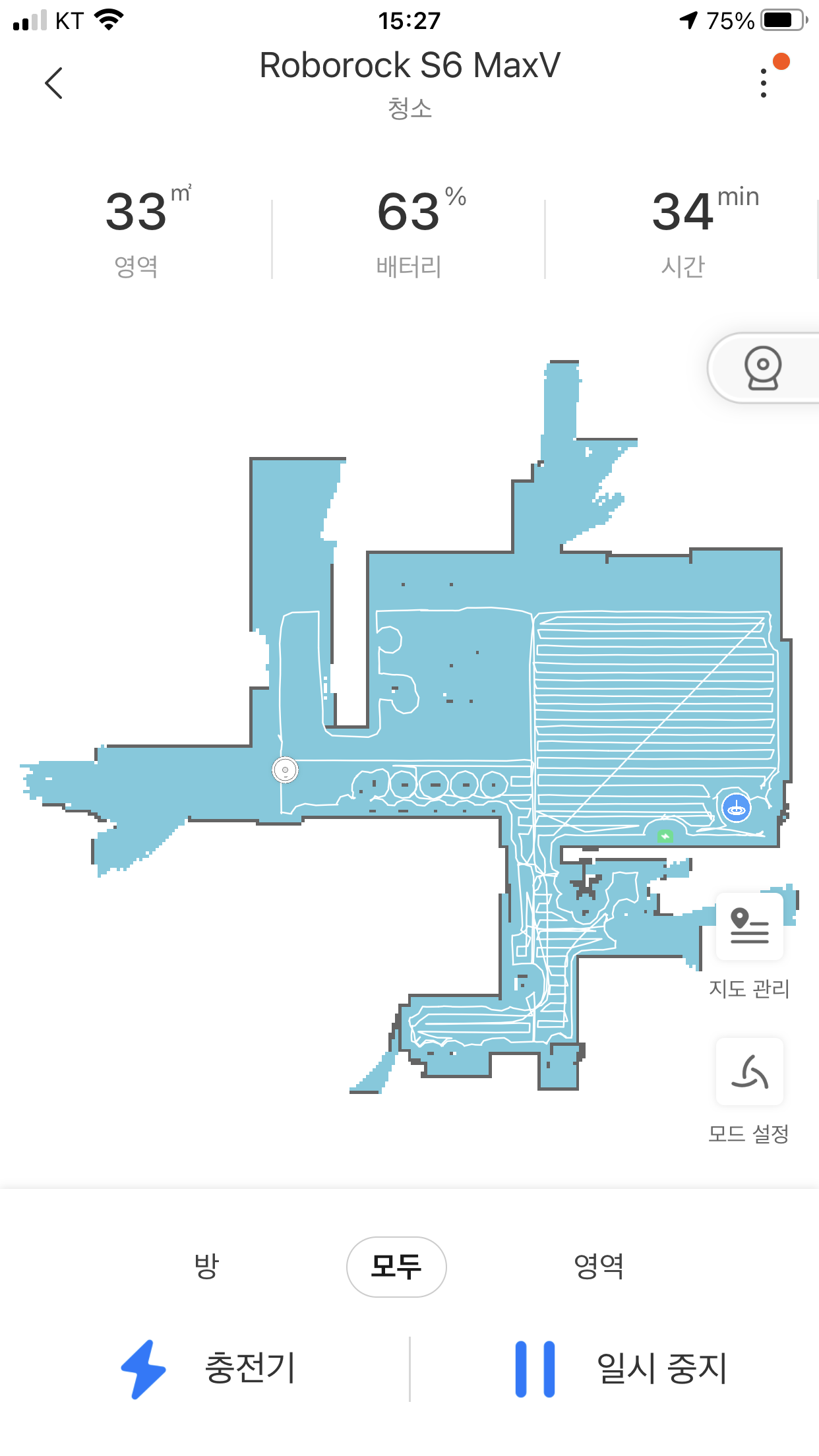 청소 완료 후 맵을 보니 거의 빠짐없이 다~ 청소한 걸 볼 수 있습니다. 생각보다 대단하네요. 청소를 1시간 넘게했는데 일반 사람이 하기에는 귀찮고 어려운 일이죠.