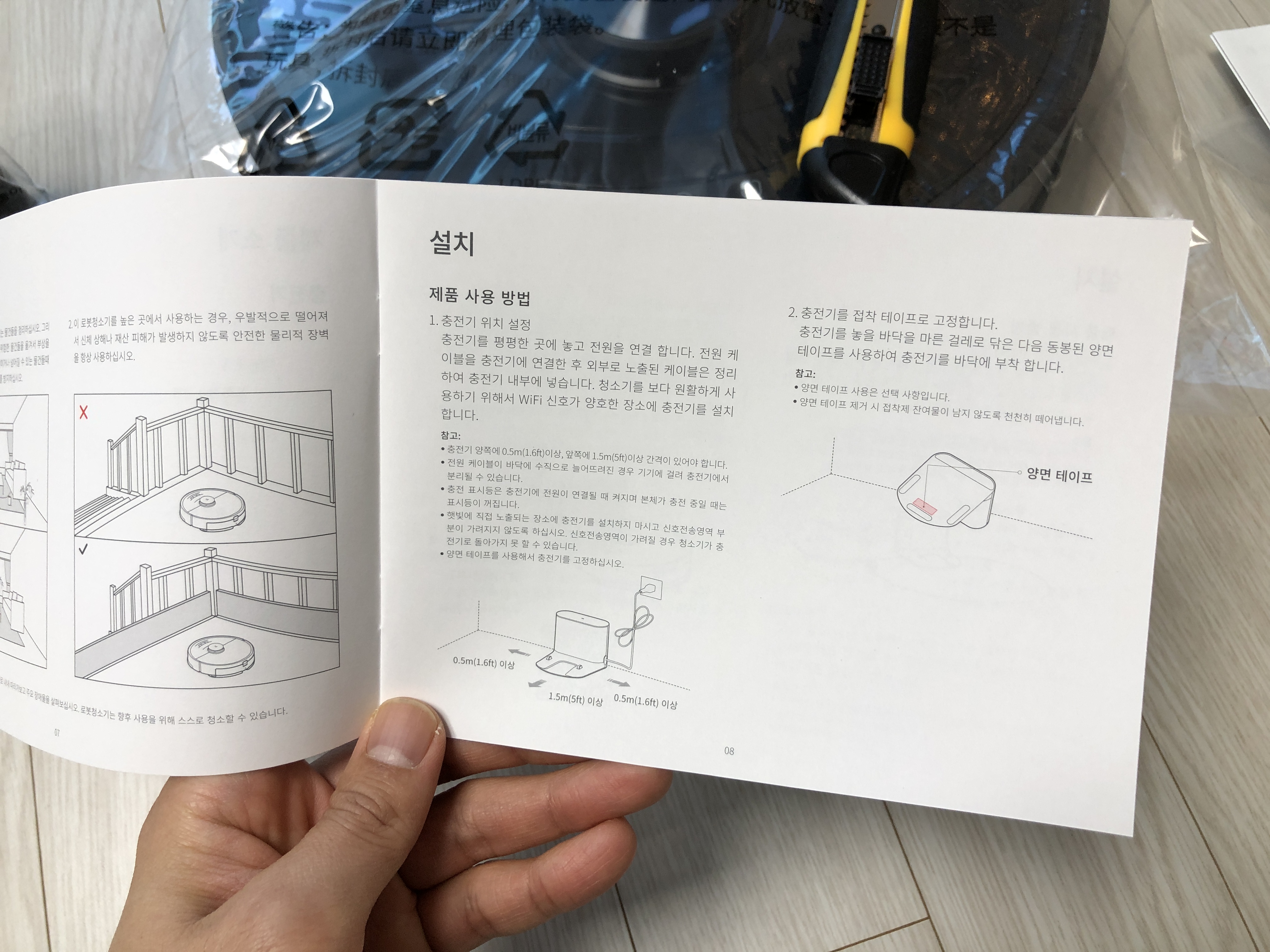 처음 사용해보는 로봇청소기라 설명서를 한번 쭈욱 정독하고 제품을 설치, 사용했습니다.