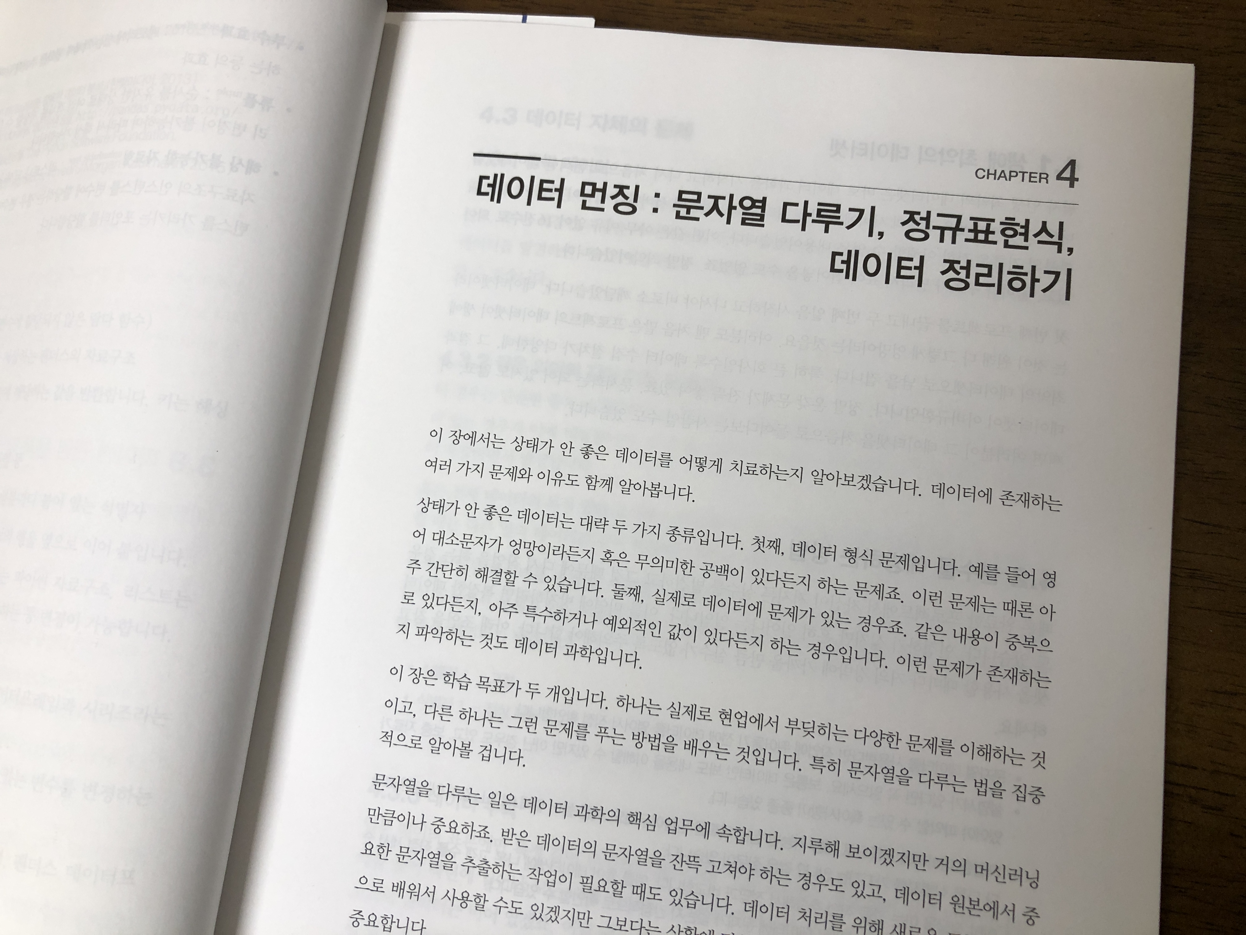이 책은 우선 데이터를 다듬는 방법부터 설명합니다. 먼저 눈으로 데이터를 보면서 문제가 없는지 살펴본 후 프로그래밍으로 쓸모있게 변경하는 작업입니다. 아무리 통계, 머신러닝, 딥러닝을 할 수 있어도 데이터에 문제가 있으면 그 결과값도 의미가 없기 때문에 이 부분부터 잘 배워야겠습니다.