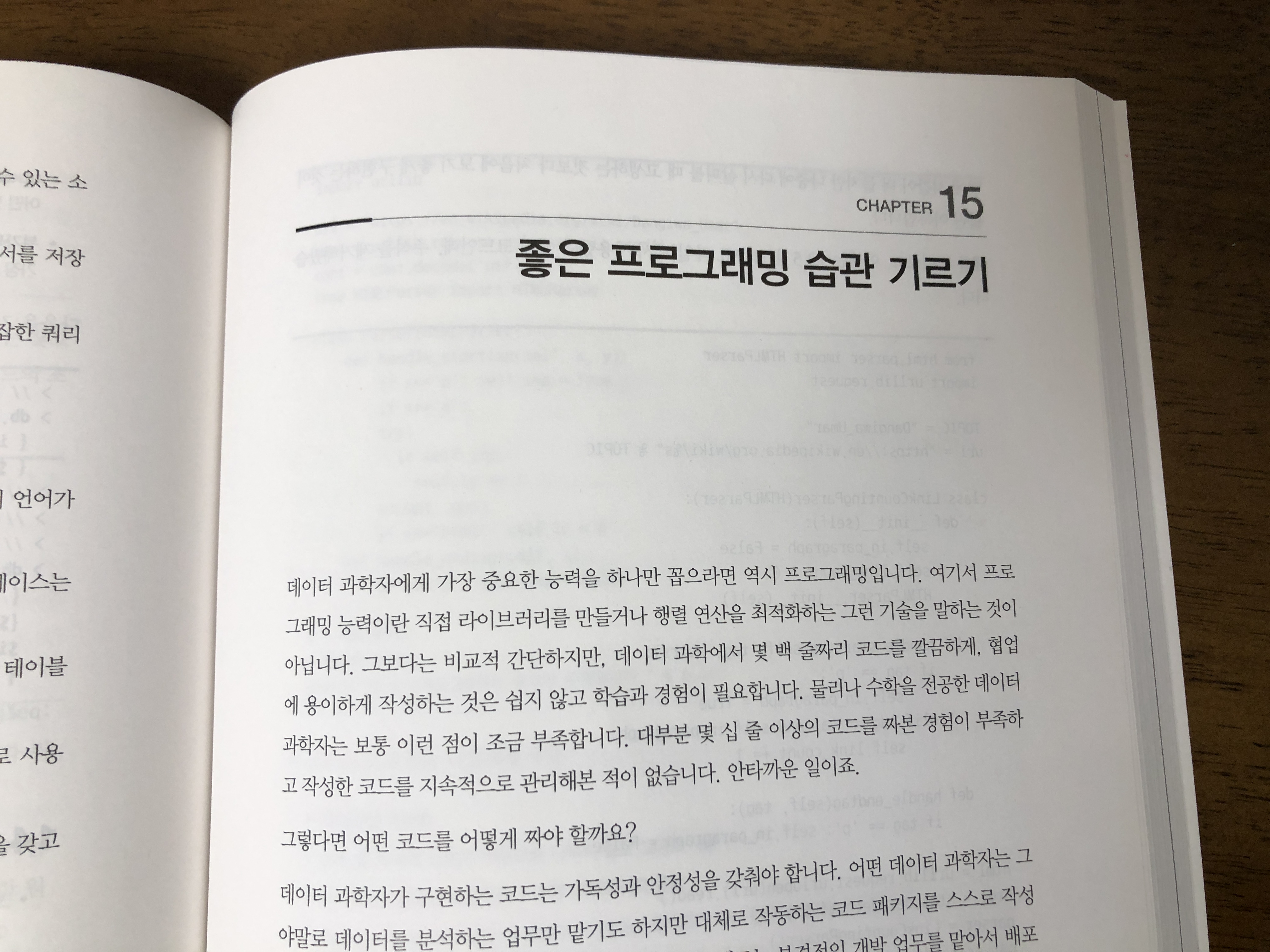 데이터 과학 책이 다소 답답할 수 있는데 이 책은 중간 중간 내용은 쉽지만 알고 보면 더 중요한 꿀팁을 넣어서 긴장을 푸는데 도움을 줍니다. 예를 들면 의사소통, 문서화 같은 내용이나 좋은 프로그래밍 습관 같은 내용이 그렇습니다.