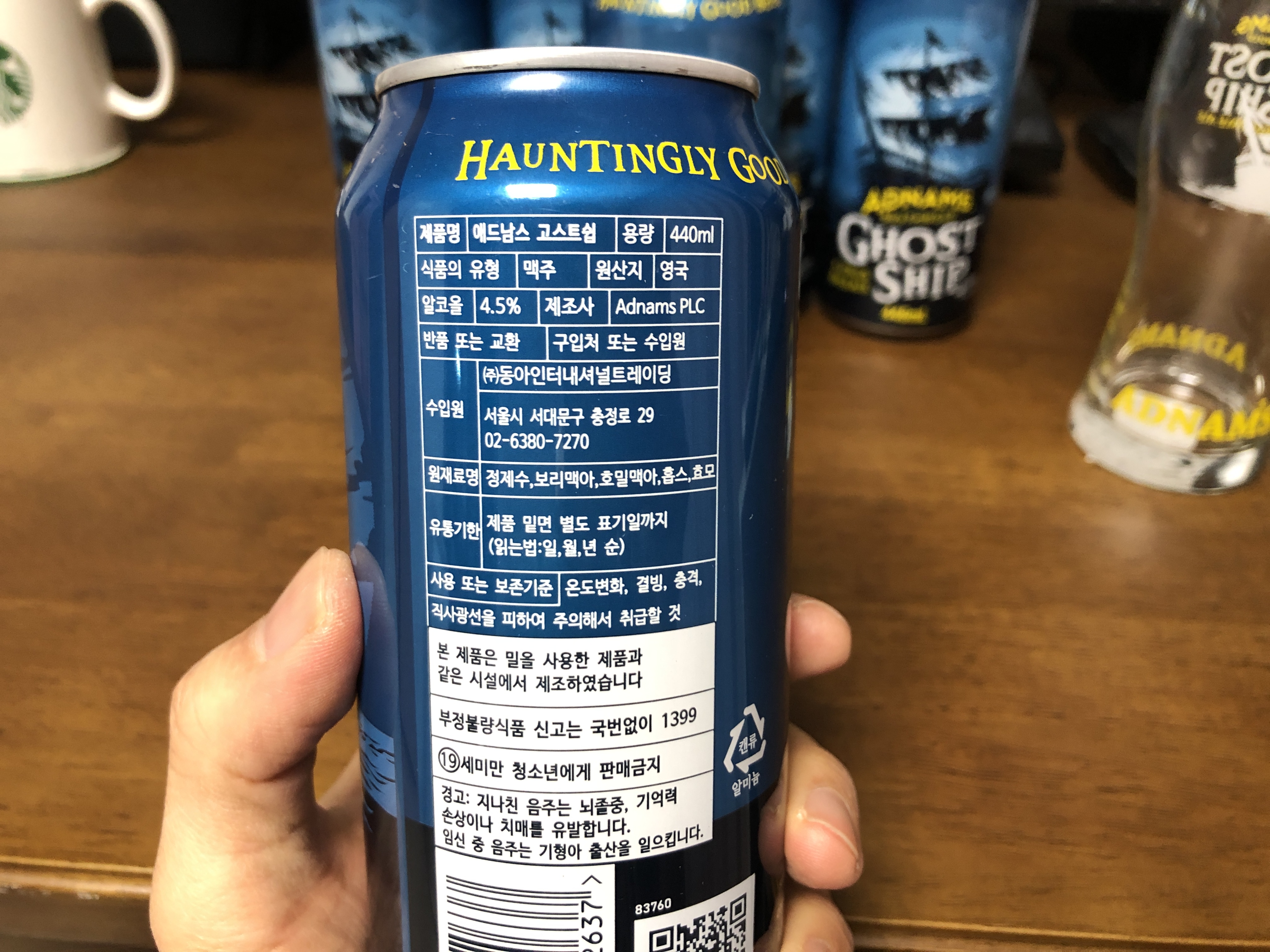 애드남스 고스트쉽 맥주는 영국 맥주고 알콜 도수는 4.5%로 생각보다 낮네요.