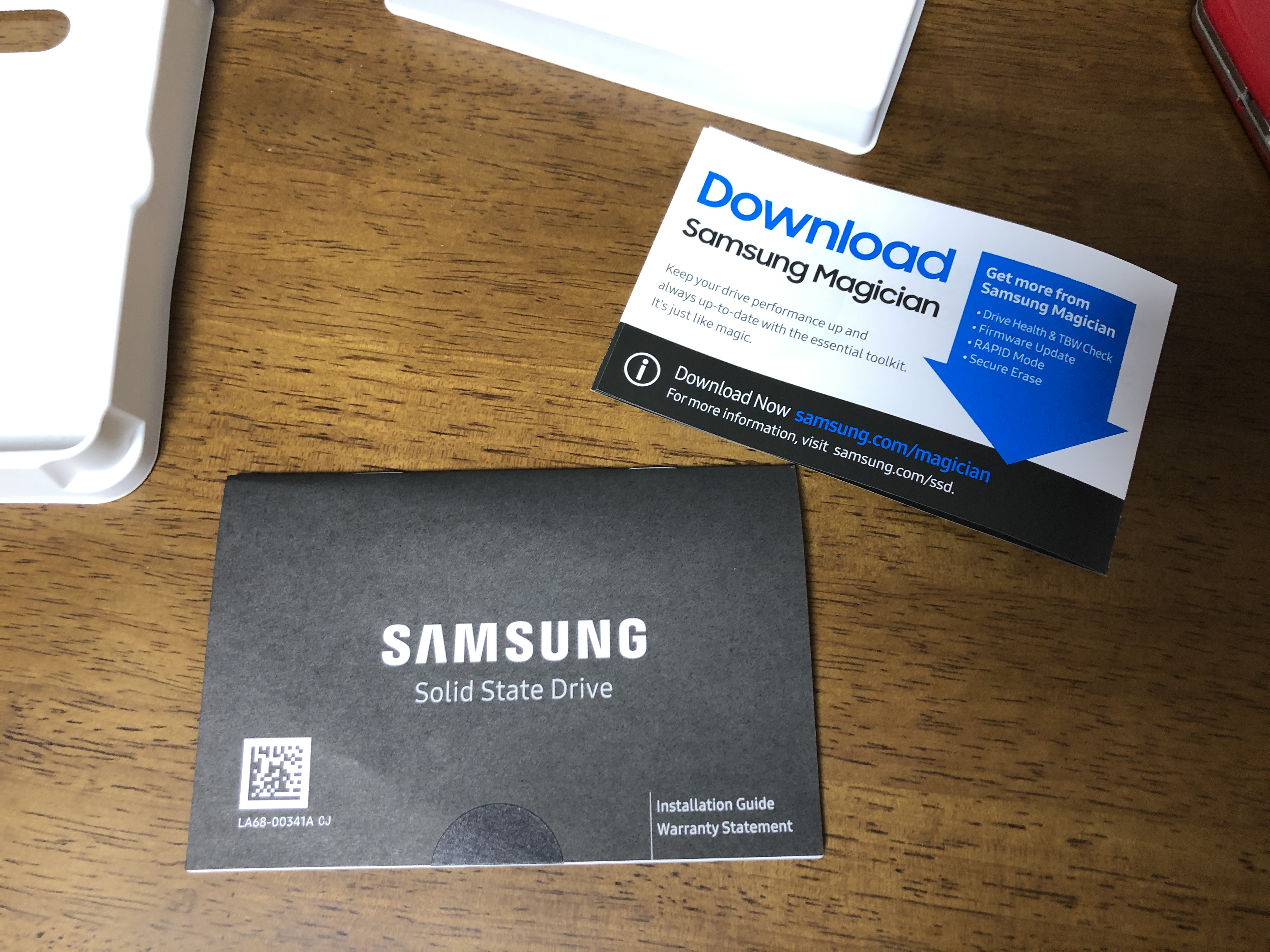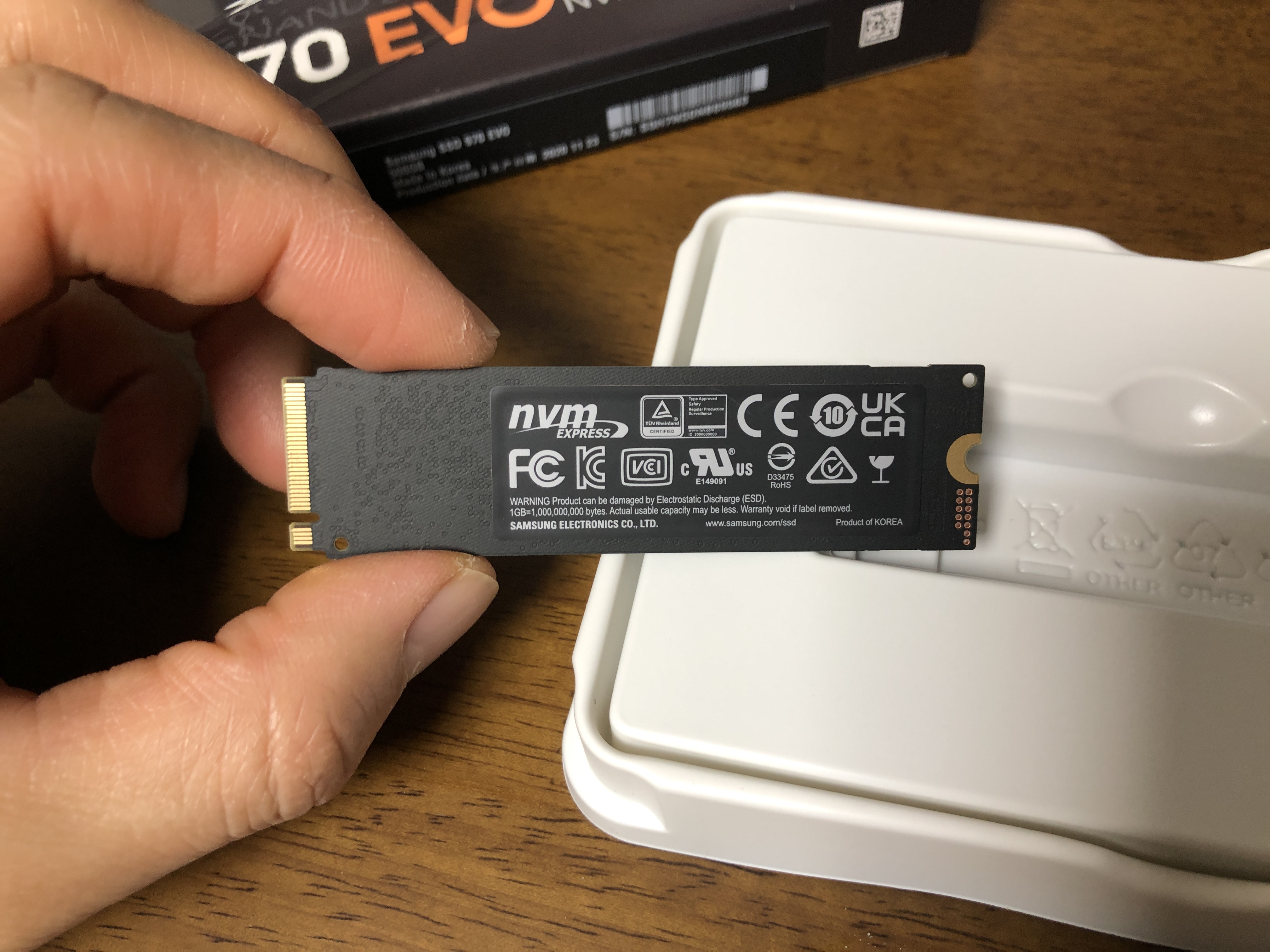 삼성 970 EVO NVMe를 개봉한 모습. 예전 HDD 쓰다가 SSD를 쓸 때 참 작다고 생각했는데 NVMe는 더 작아졌네요. 마치 일반 메모리 끼우듯 설치할 수 있나 봅니다.