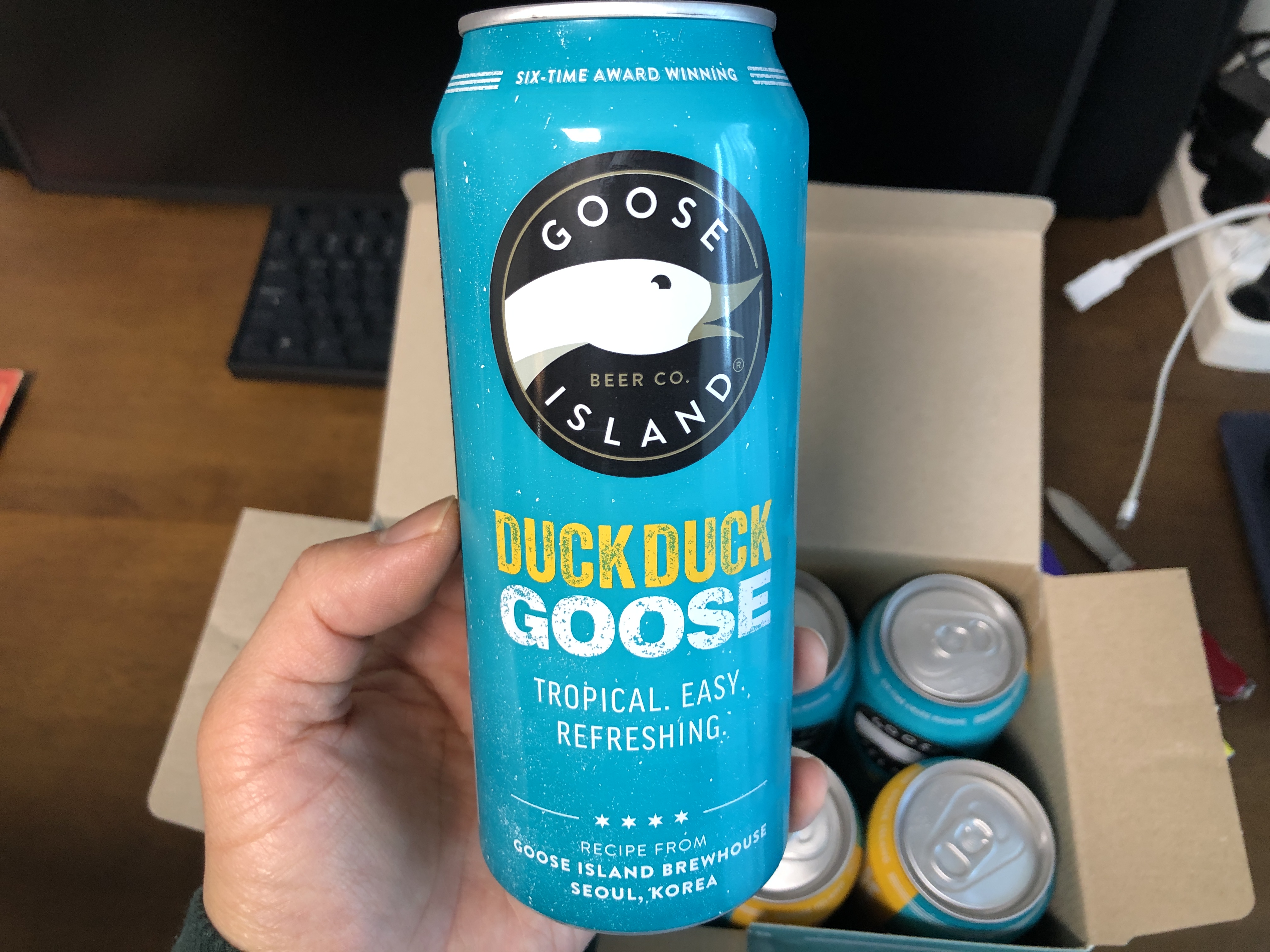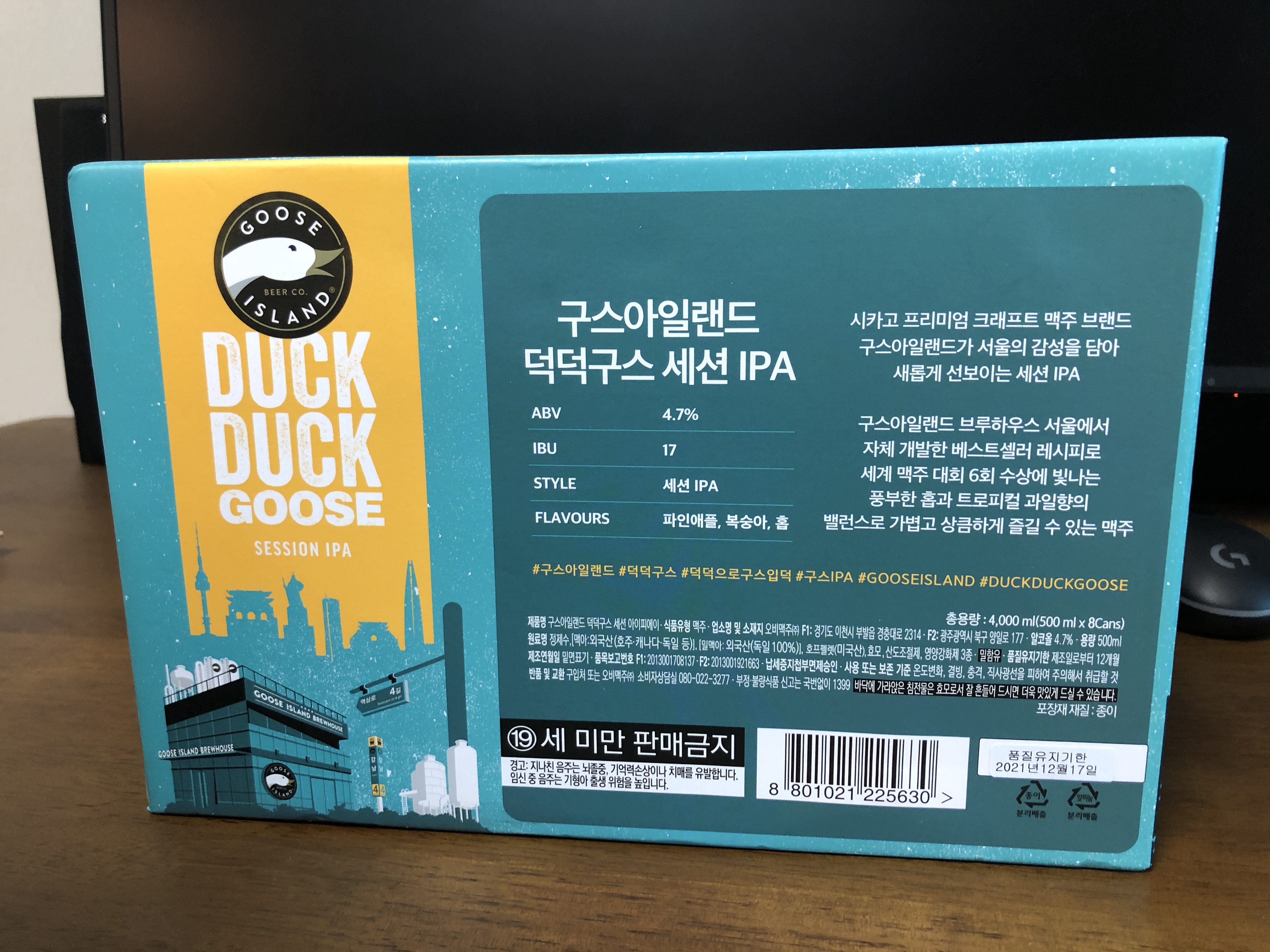 구스아일랜드 덕덕구스 세션 IPA... 이름부터가 참 특이한 맥주입니다. 외국 맥주인데 이 덕덕구스는 서울에서 자체 개발했다고 합니다.
