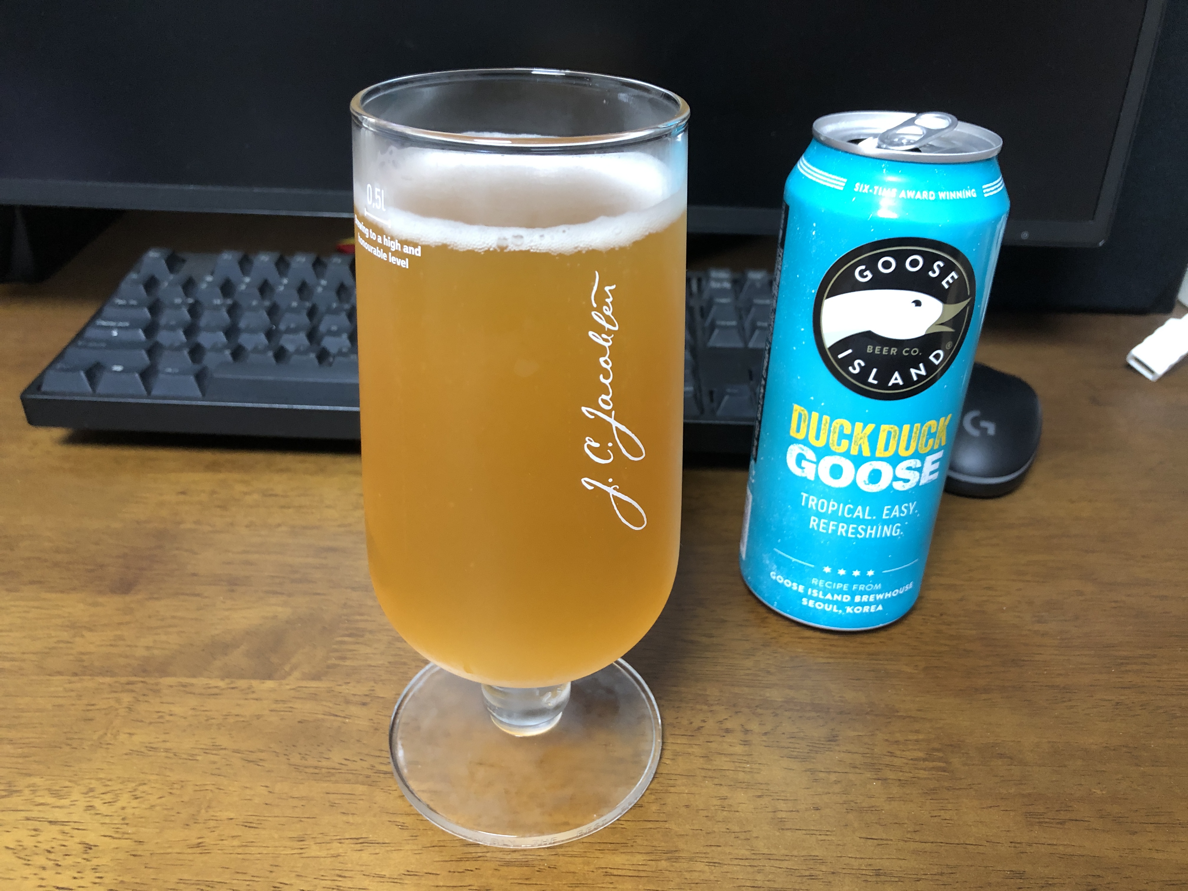 서울 구스아일랜드에서 개발한 덕덕구스 세션 IPA. IPA 특유의 과일향과 쓴맛이 있지만 과하진 않습니다. 전체적으로 밸런스가 잘 잡힌 맥주구나 생각했습니다. 자주 마시던 구스아일랜드처럼 거부감 없는 깔끔한 맛이 좋았습니다. 일반 라거가 지겨울 때 마시면 좋을 것 같습니다.